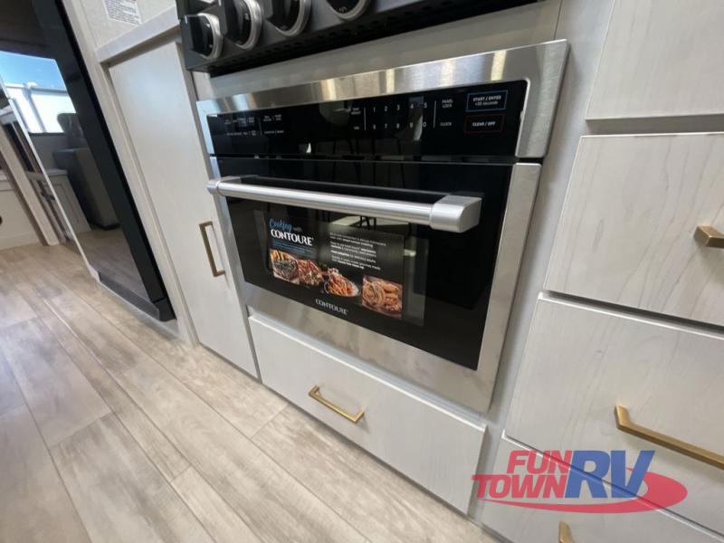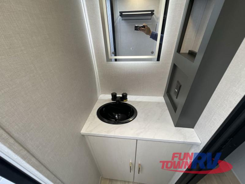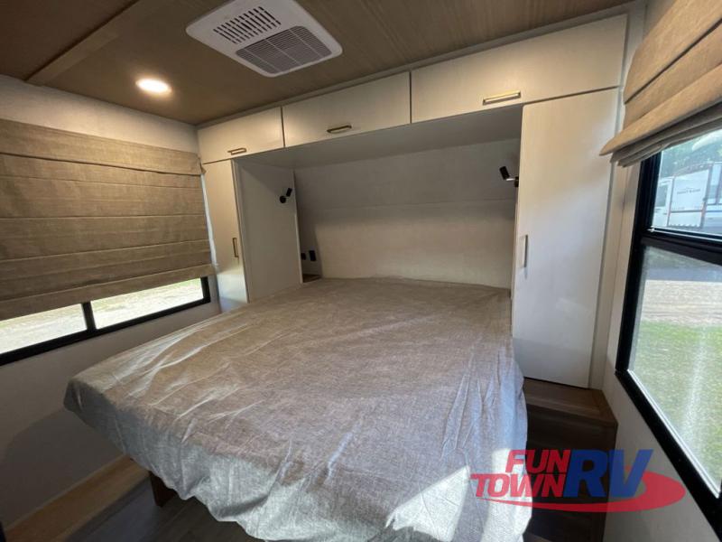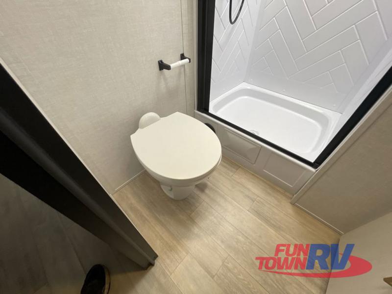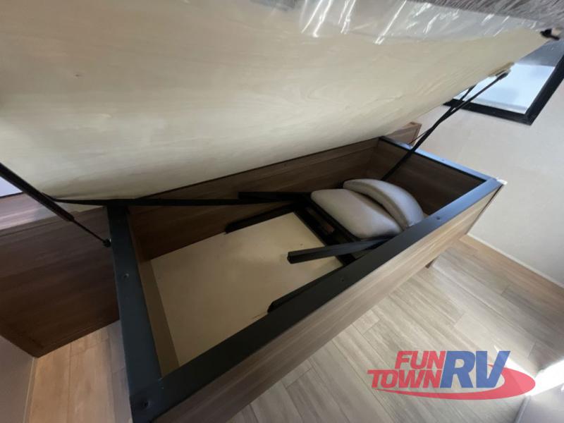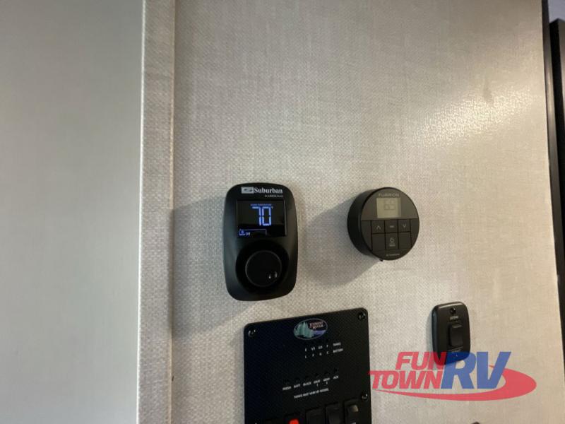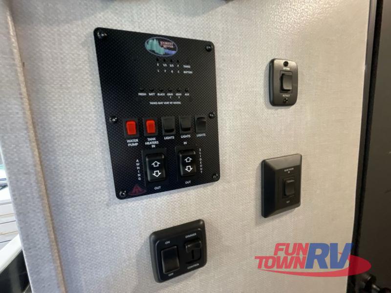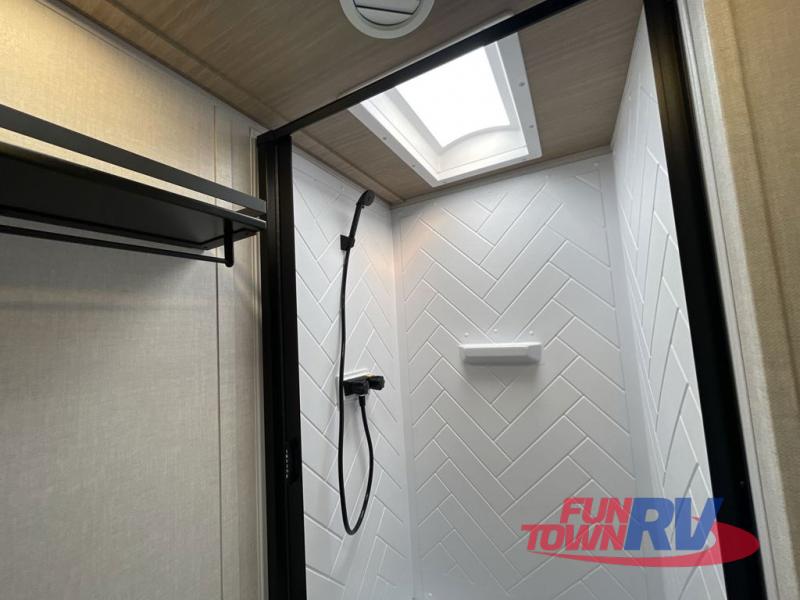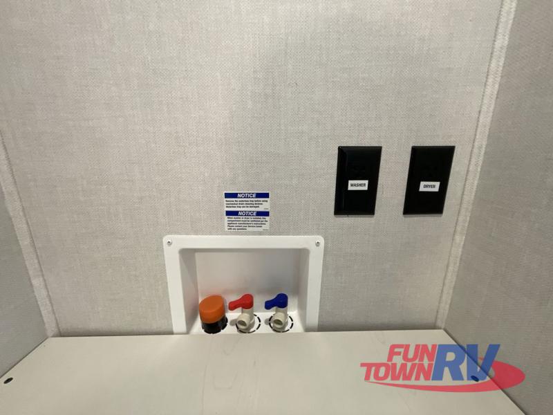 This travel trailer allows you to enjoy the great outdoors without having to give up your creature comforts. The dual opposing slides provide the chef space to work around the kitchen island, and there is plenty of seating space for your guests on the theater seatingĀ orĀ the sleeper sofa, plus there's a desk area with chair so you can work on the go. The fireplace with a TV above will be perfect for those rainy days, and there is even a large skylight to let natural light into the living room. This model also includes Sure-Step entry steps, pass-through storage, plus two power awnings with LED lights so you can spend more time outdoors with friends and family!