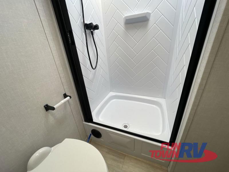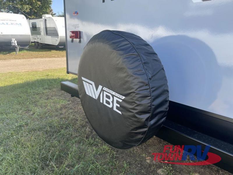With any Vibe travel trailer by Forest River, you will enjoy comfort at every turn! There is a Norco huck-bolted steel frame, an enclosed underbelly with 12V heating pads, and a PVC roof membrane for added durability. You will also find a universal docking station outside, along with slam latch doors, European style square windows, and an automotive painted front cap. Head inside to enjoy the premium residential-style furniture, decorative window treatments, privacy shades in the living room and bedroom, and many more comforts!