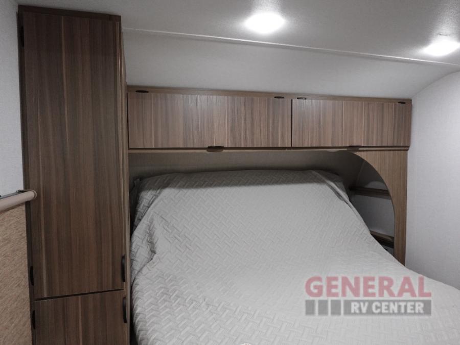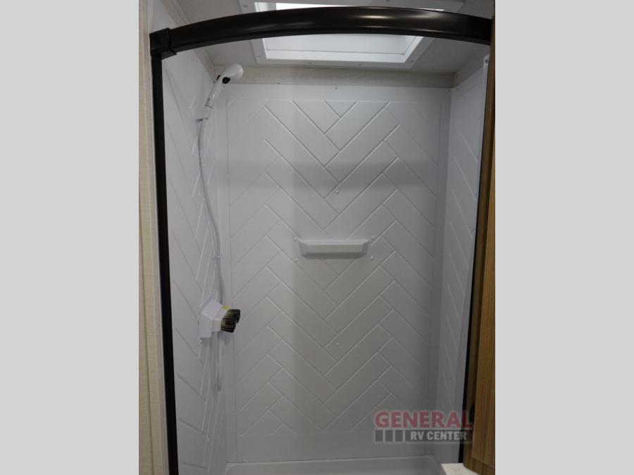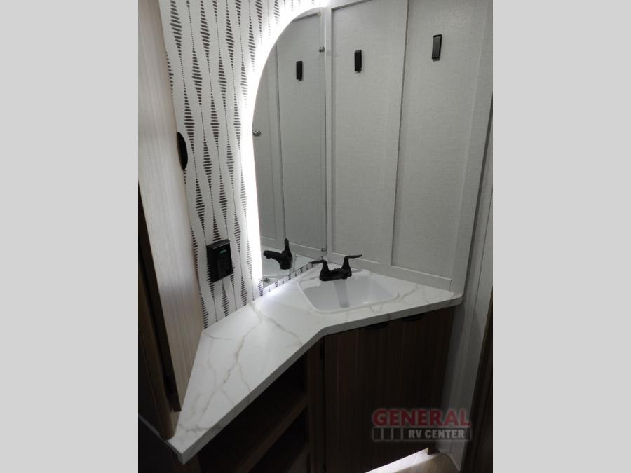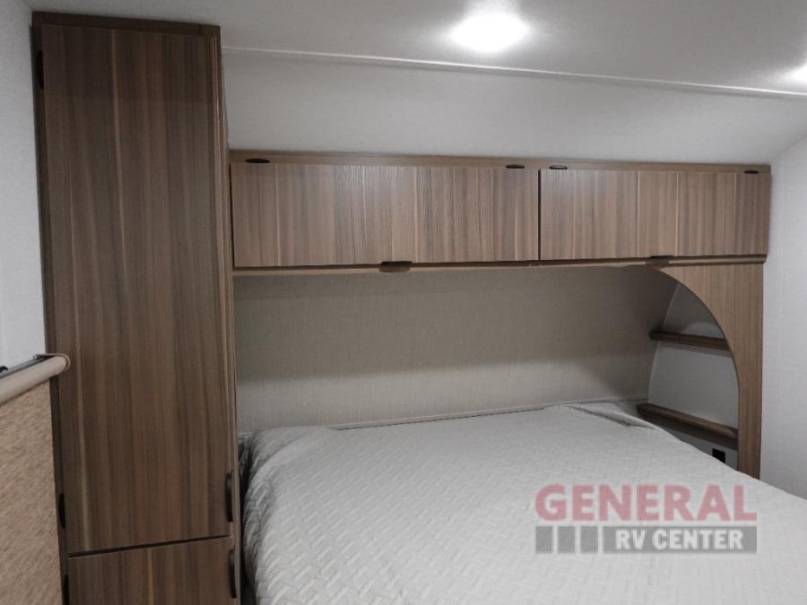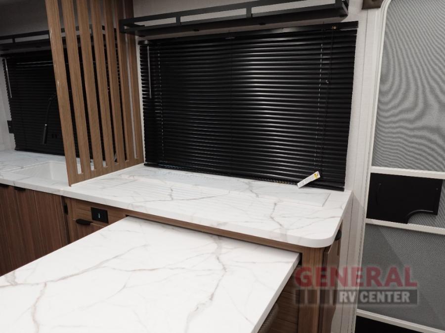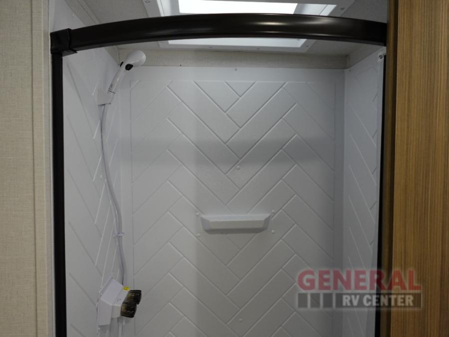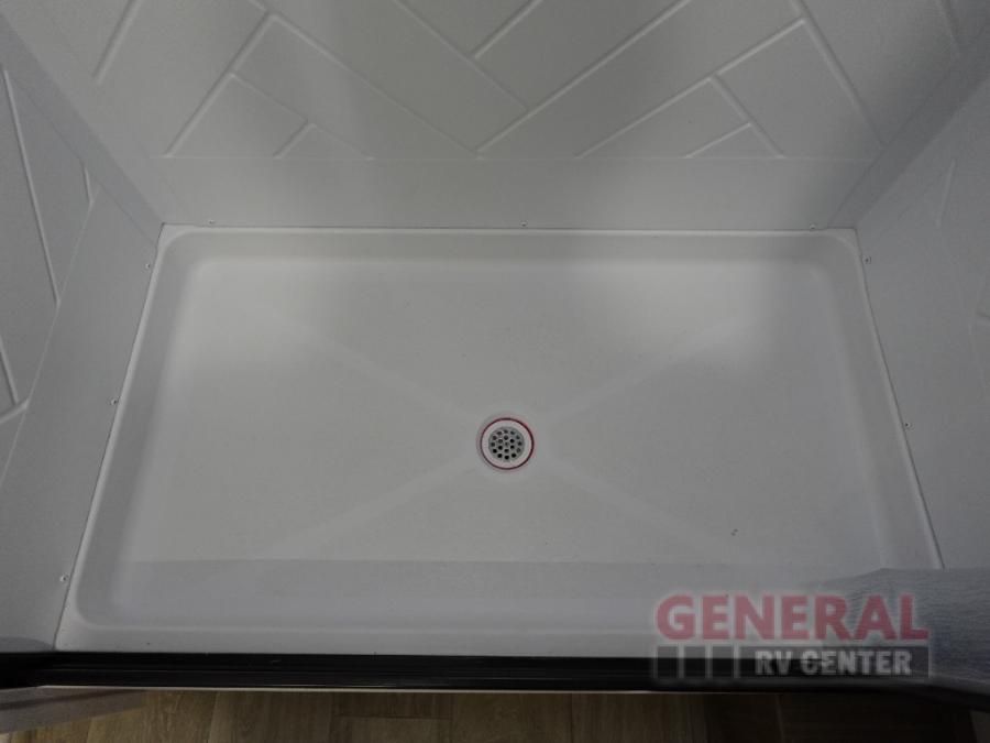 You can enjoy at-home comforts wherever you decide to camp in this travel trailer. The custom king bed with Versa Tilt includes dual shelves and a wardrobe so you can keep your space tidy. If you have a guest or two little ones, they can sleep on the jackknife sofa within the large slide out or on the double-size bunks right next to the full bath. Once you've made breakfast in the fully equipped kitchen, you can utilize the pull-out table to dine at. There is also a fireplace below the table, which will be perfect for cozy evenings indoors.
