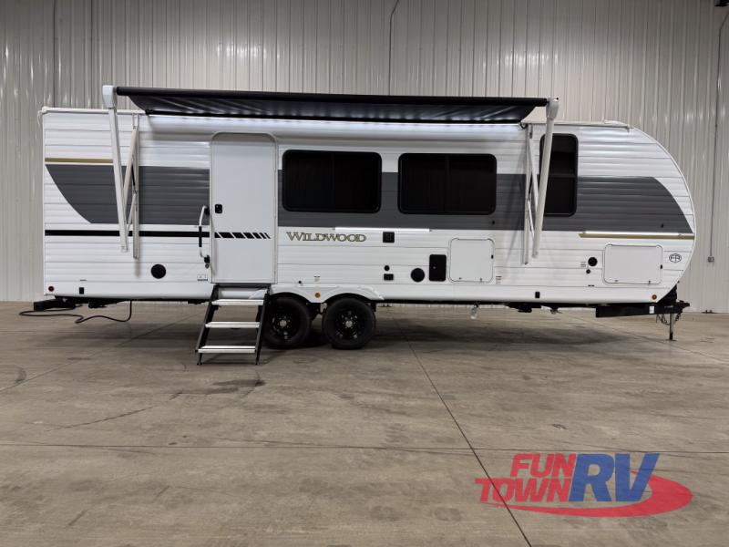 The Wildwood travel trailers are packed with hassle-free camping amenities! There are a variety of floorplans to choose from so you can find the layout that best fits your needs. The heated and enclosed Accessibelly will help protect against the elements and debris during transport, and the exterior retro/metal redesign is sure to be eye-catching! There are stylish roller shades inside, along with updated backsplash, elegant curtain rods and curtains, plus many more interior comforts! Choose a Wildwood travel trailer today for quality and value!