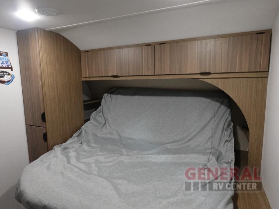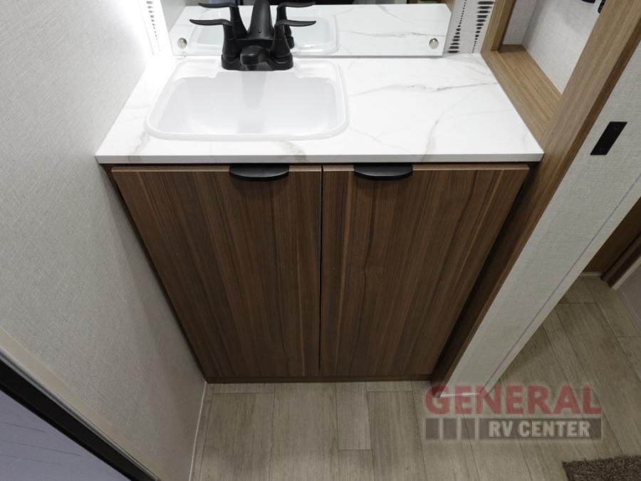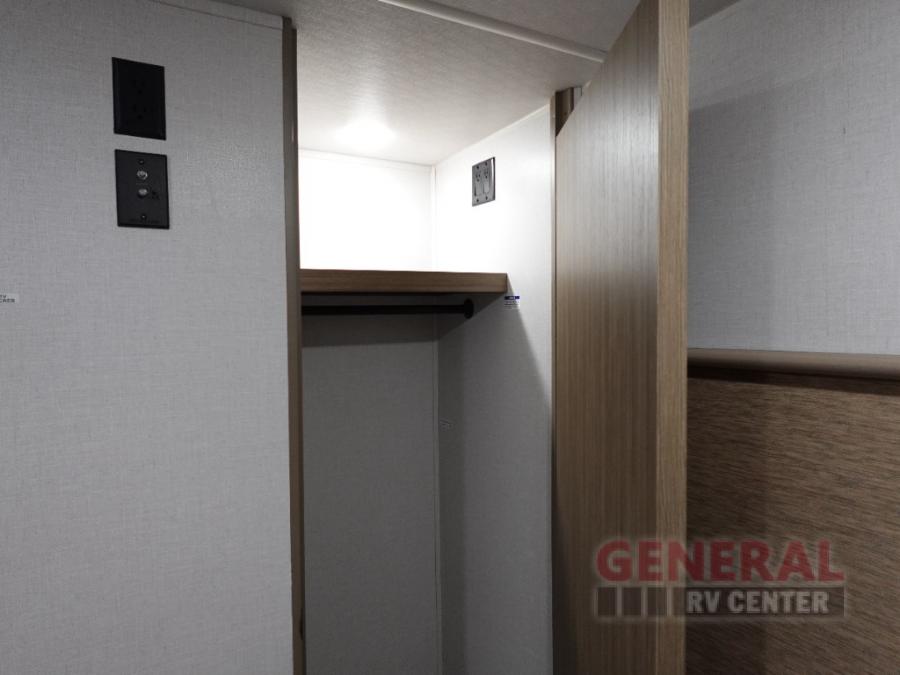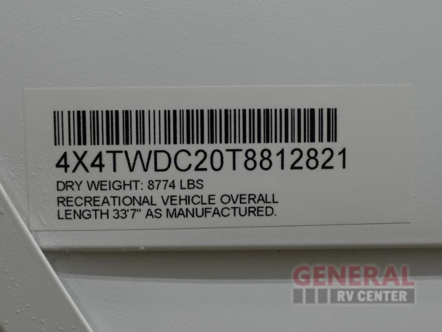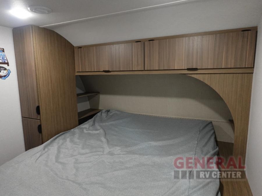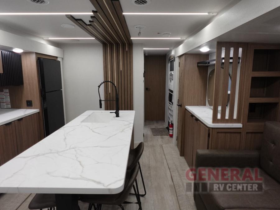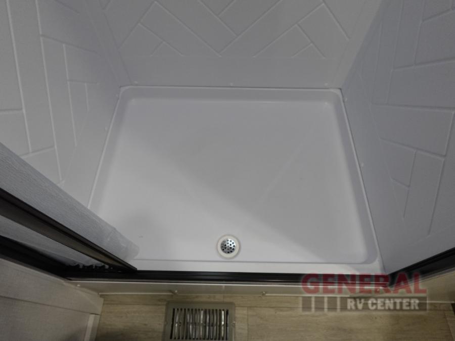Find your zen int this spacious travel trailer for four! Once you've unloaded your gear, you can head inside to make lunch at the kitchen island with four chairs. An 80" trundle sofa provides additional seating space plus sleeping space for guests. You will love the rear custom recliners that are conveniently located next to the fireplace. The full bath is located towards the front next to the private bedroom so you can easily use the restroom at night, and you're sure to get a great night's rest on the custom king bed with Versa Tilt. This unit also includes washer and dryer prep, giving you the option to add these appliances.