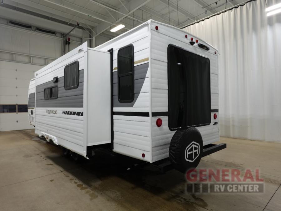 The Wildwood travel trailers are packed with hassle-free camping amenities! There are a variety of floorplans to choose from so you can find the layout that best fits your needs. The heated and enclosed Accessibelly will help protect against the elements and debris during transport, and the exterior retro/metal redesign is sure to be eye-catching! There are stylish roller shades inside, along with updated backsplash, elegant curtain rods and curtains, plus many more interior comforts! Choose a Wildwood travel trailer today for quality and value!