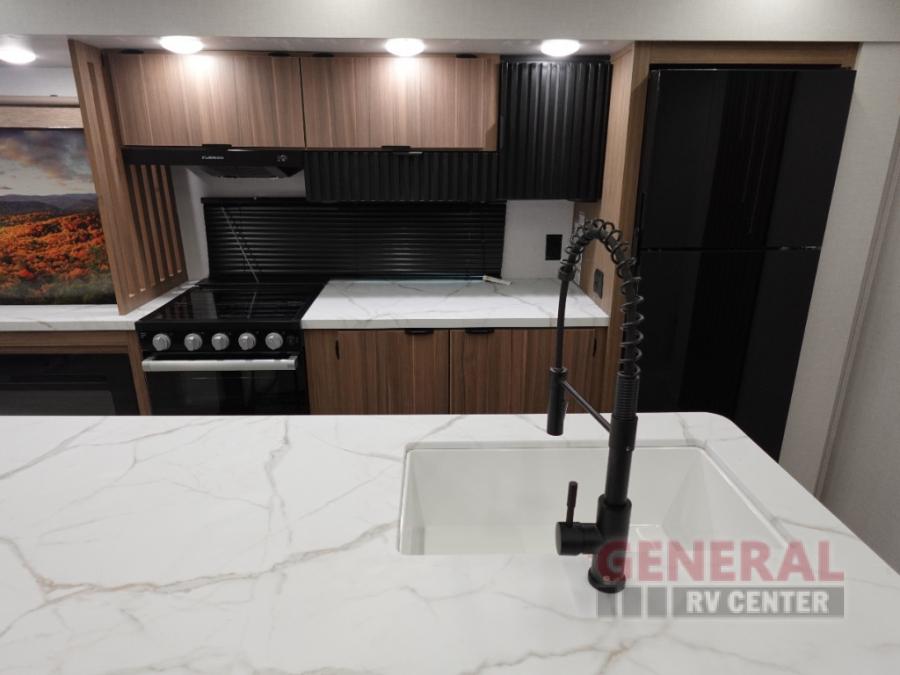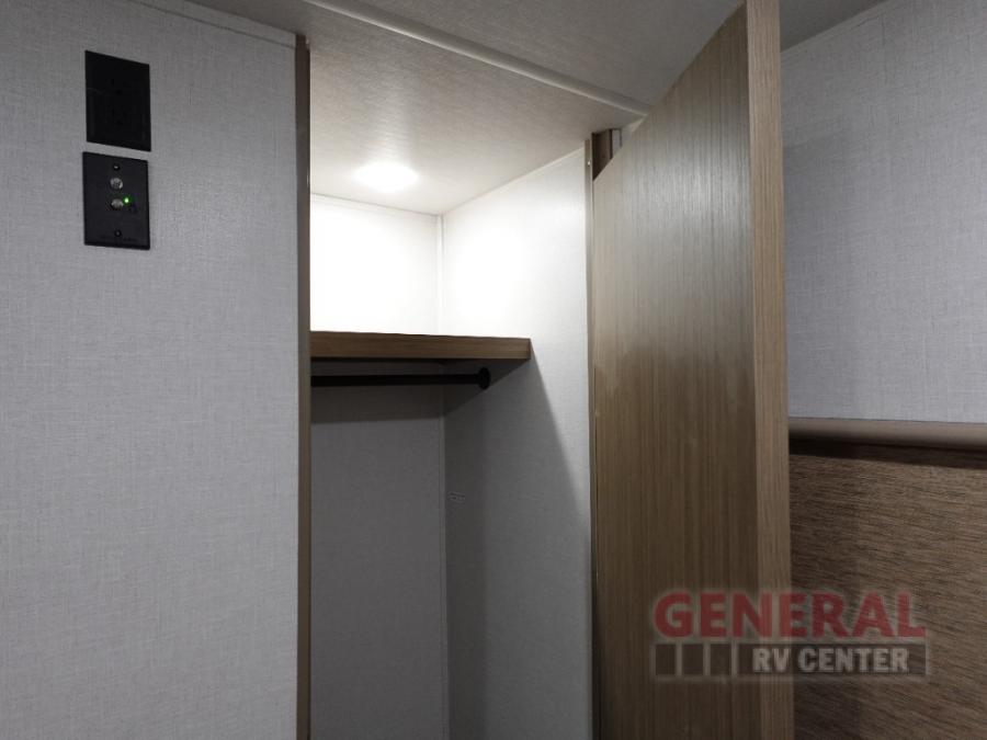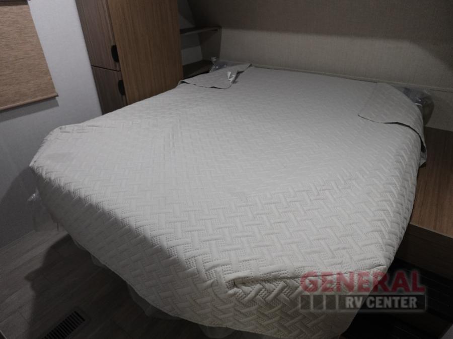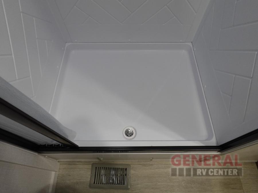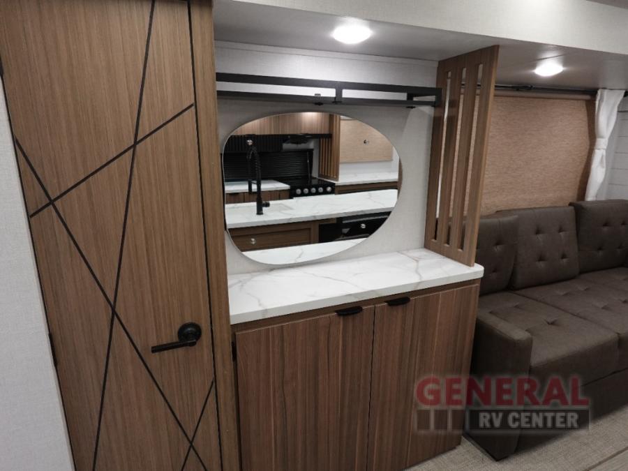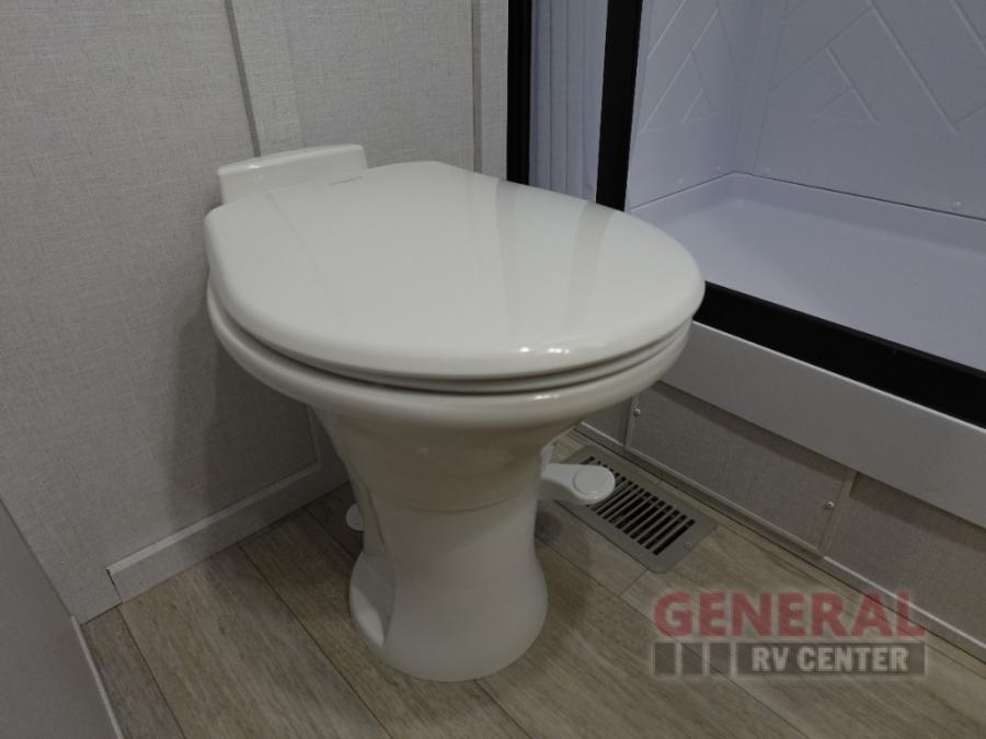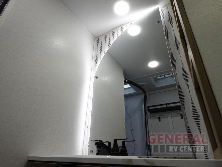 Find your zen int this spacious travel trailer for four! Once you've unloaded your gear, you can head inside to make lunch at the kitchen island with four chairs. An 80" trundle sofa provides additional seating space plus sleeping space for guests. You will love the rear custom recliners that are conveniently located next to the fireplace. The full bath is located towards the front next to the private bedroom so you can easily use the restroom at night, and you're sure to get a great night's rest on the custom king bed with Versa Tilt.