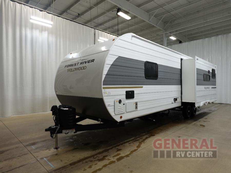 The Wildwood travel trailers are packed with hassle-free camping amenities! The heated and enclosed Accessibelly will help protect against the elements and debris during transport, and the exterior retro/metal redesign is sure to be eye-catching! There are stylish roller shades inside, along with updated backsplash, elegant curtain rods and curtains, plus many more interior comforts! Choose a Wildwood travel trailer today for quality and value!
