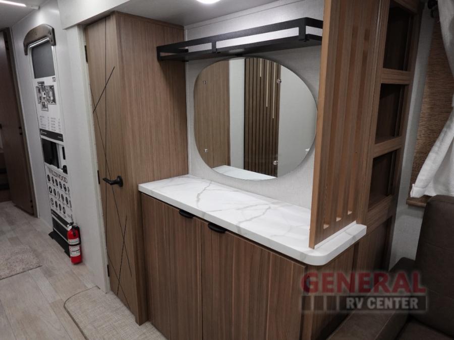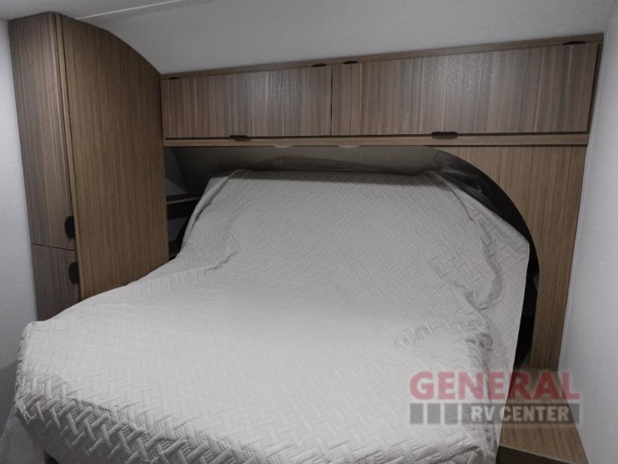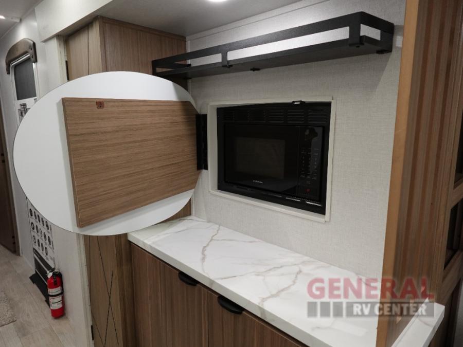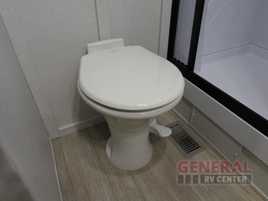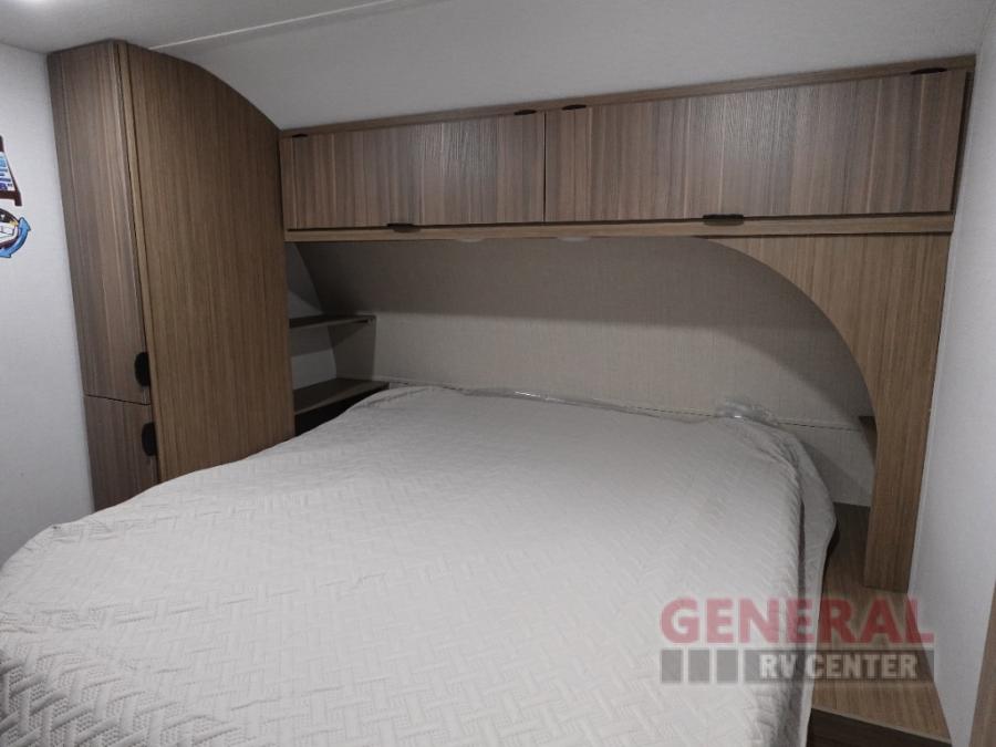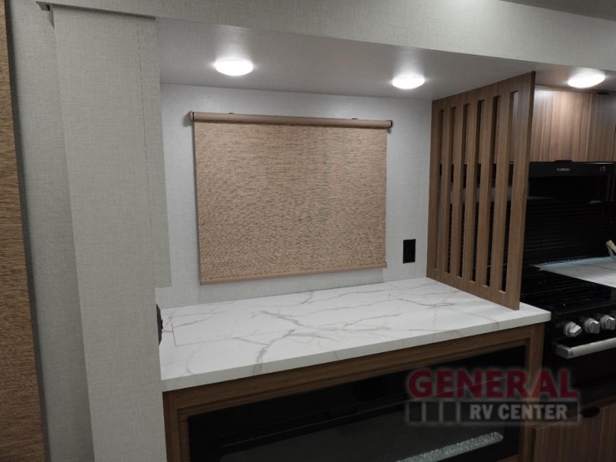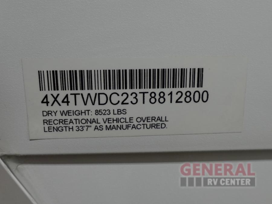 Find your zen int this spacious travel trailer for four! Once you've unloaded your gear, you can head inside to make lunch at the kitchen island with four chairs. An 80" trundle sofa provides additional seating space plus sleeping space for guests. You will love the rear custom recliners that are conveniently located next to the fireplace. The full bath is located towards the front next to the private bedroom so you can easily use the restroom at night, and you're sure to get a great night's rest on the custom king bed with Versa Tilt. This unit also includes washer and dryer prep, giving you the option to add these appliances.
