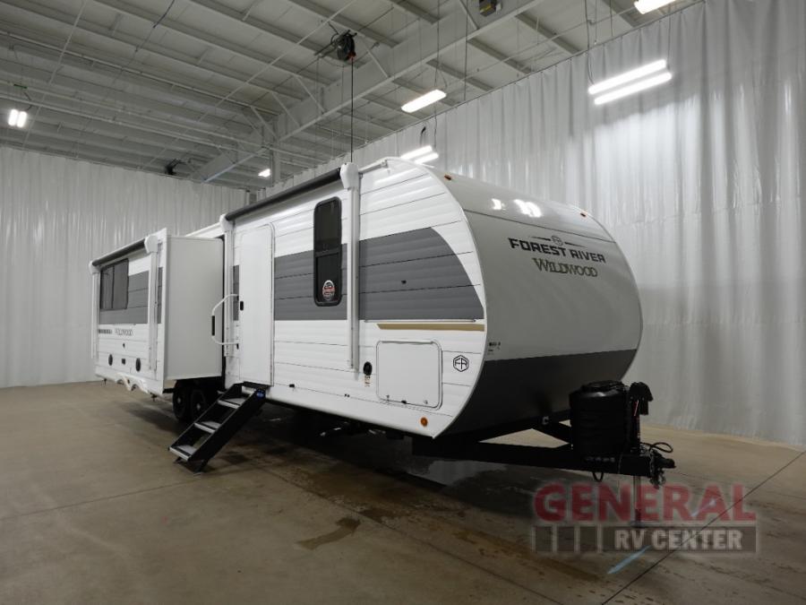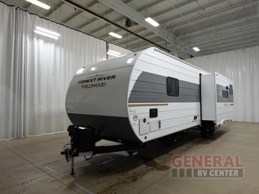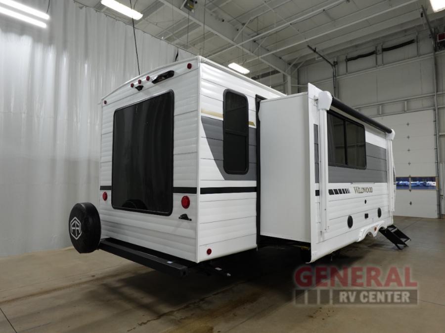 The Wildwood travel trailers are packed with hassle-free camping amenities! There are a variety of floorplans to choose from so you can find the layout that best fits your needs. The heated and enclosed Accessibelly will help protect against the elements and debris during transport, and the exterior retro/metal redesign is sure to be eye-catching! There are stylish roller shades inside, along with updated backsplash, elegant curtain rods and curtains, plus many more interior comforts! Choose a Wildwood travel trailer today for quality and value!
