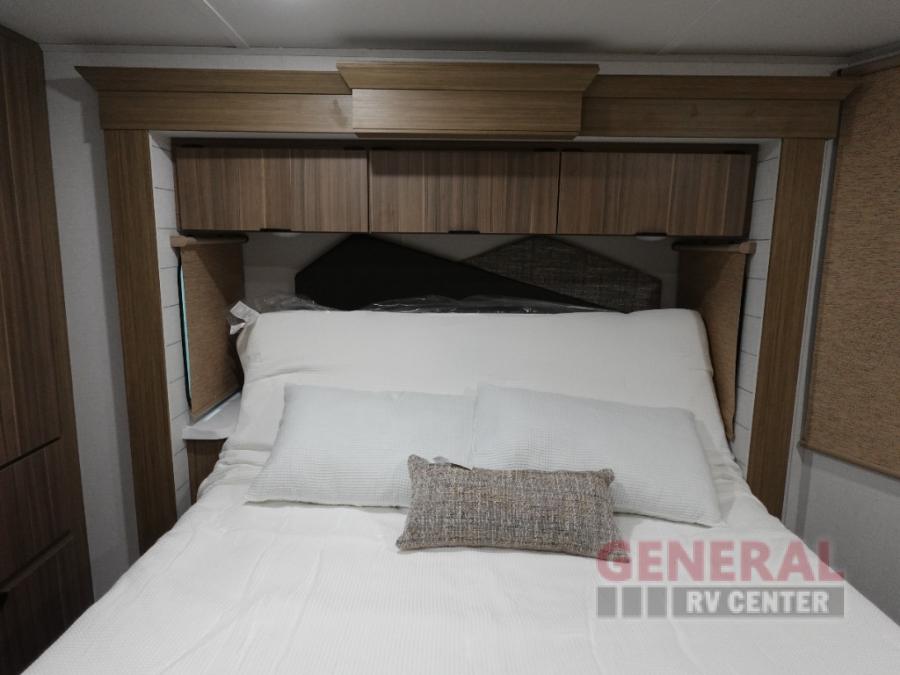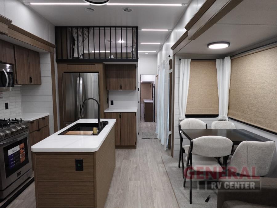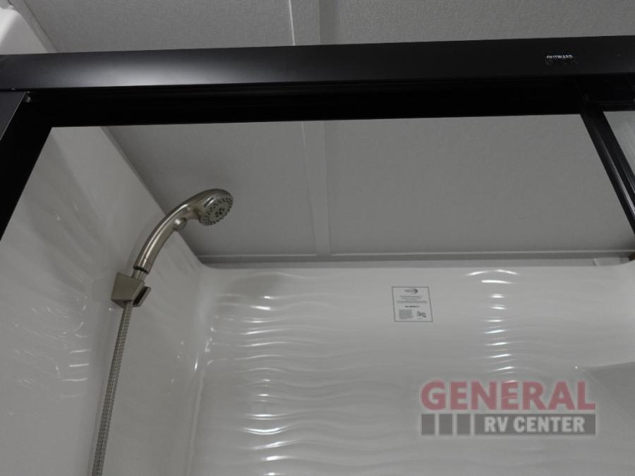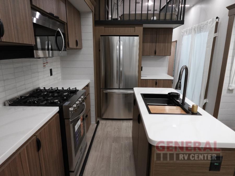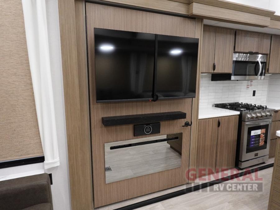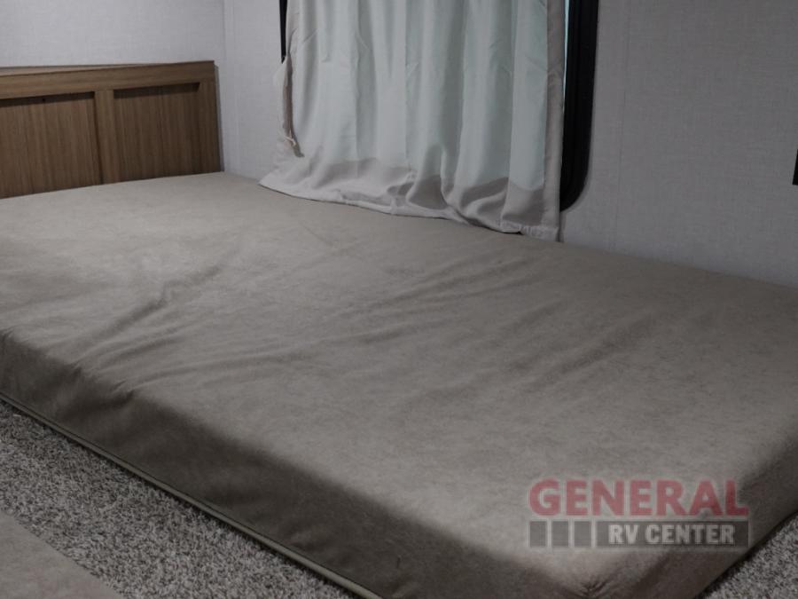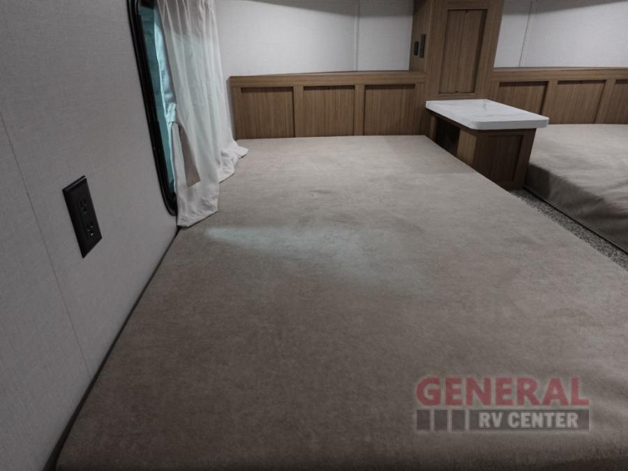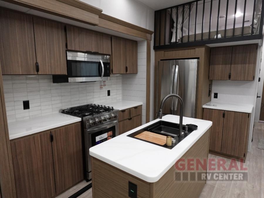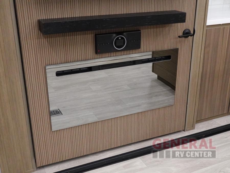 With any Wildwood Grand Lodge destination trailer by Forest River, you can enjoy extended stays wherever you go! There is 4K awning blade lighting outside, along with slide out awning toppers, plus a heated and enclosed Accessibelly for added protection. Inside, you'll love the stylish backsplash update, elegant curtain rods and curtains, TFL black walnut entertainment shelves, and stainless steel kitchen appliances. A Serta mattress in the bedroom(s) will provide comfort to each journey, and there is a tankless water heater for hot water when you need it.