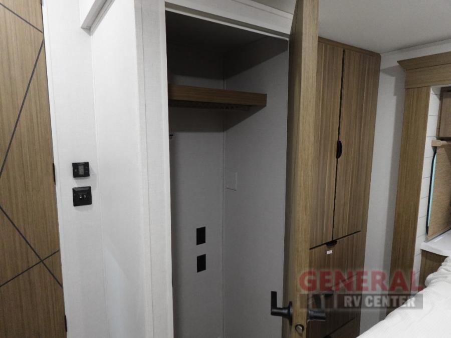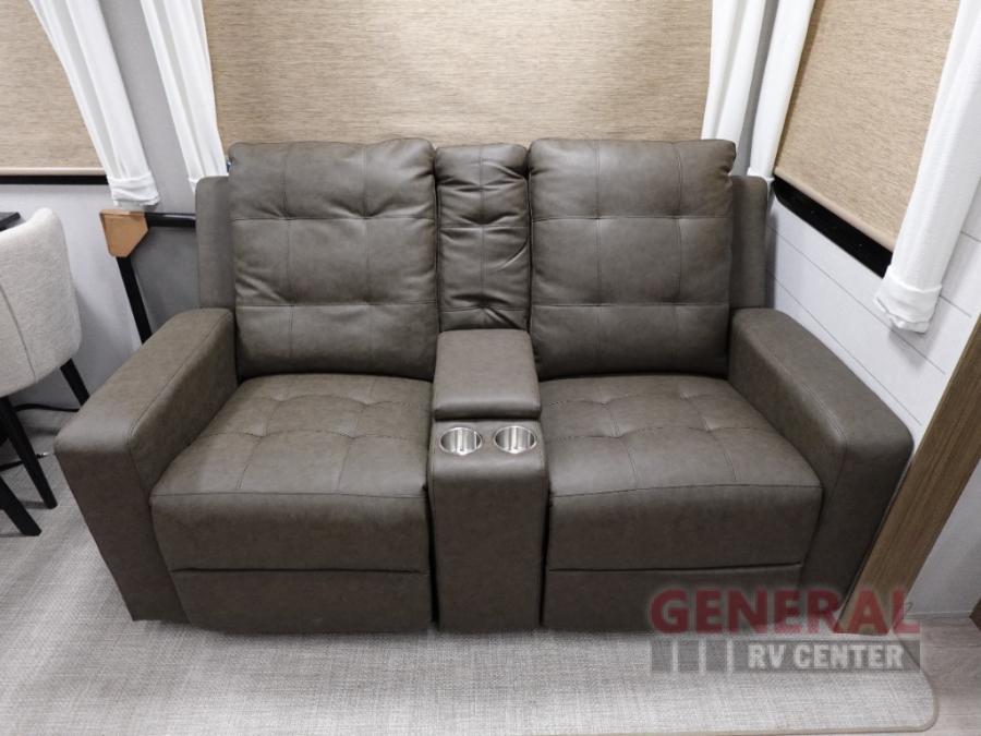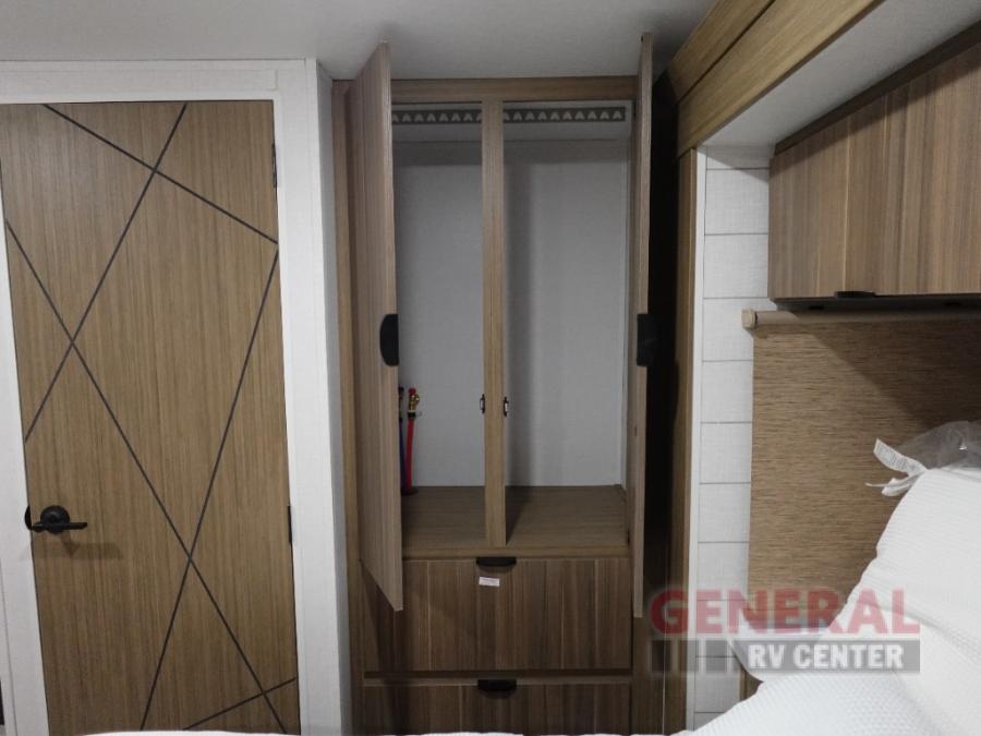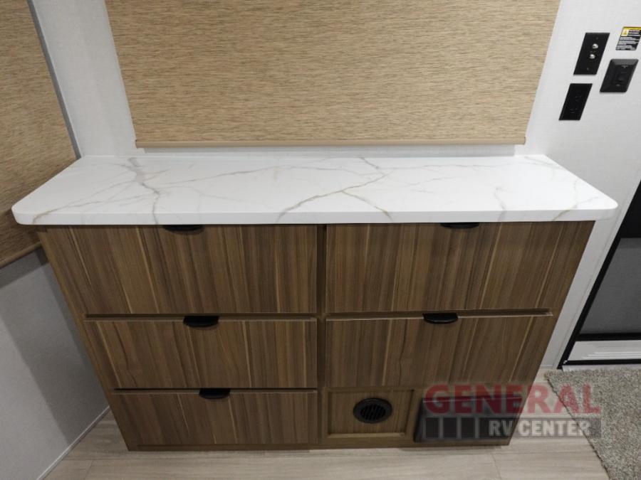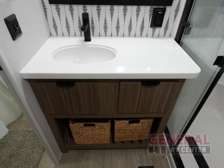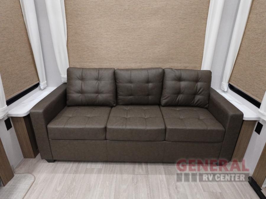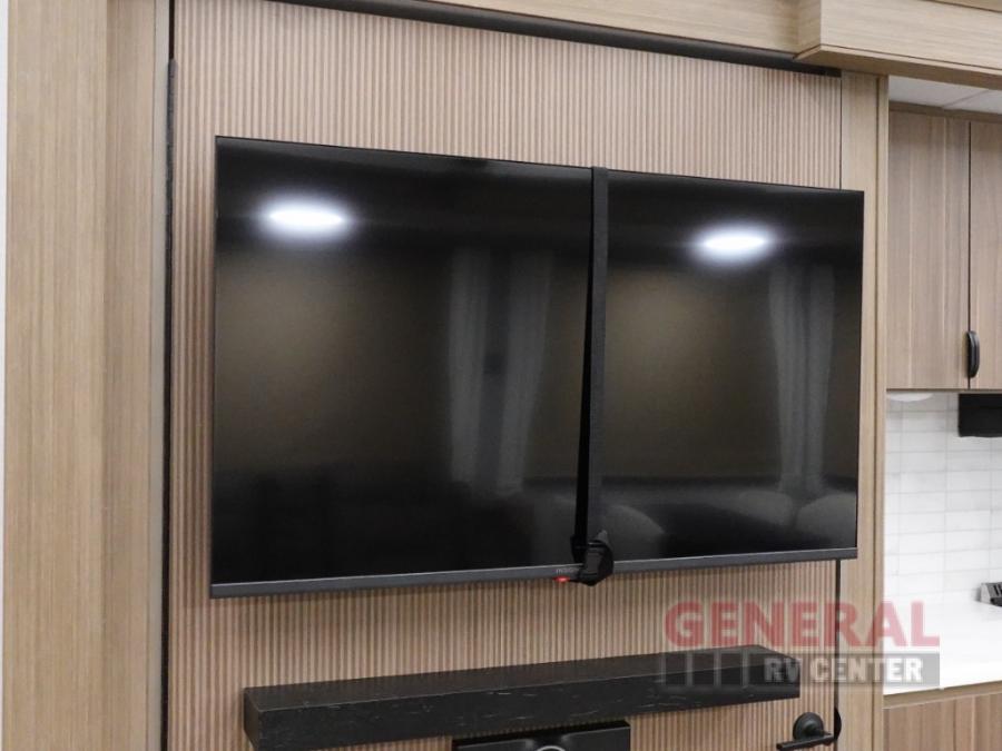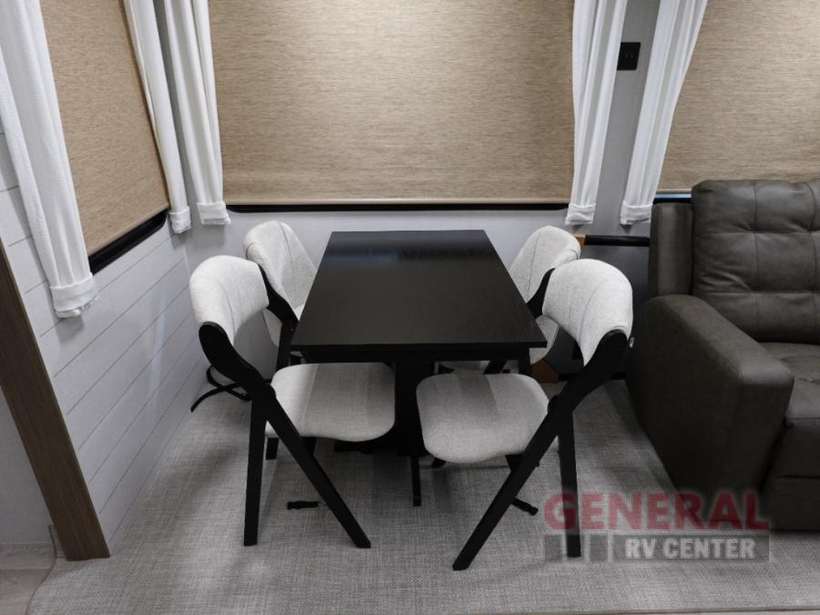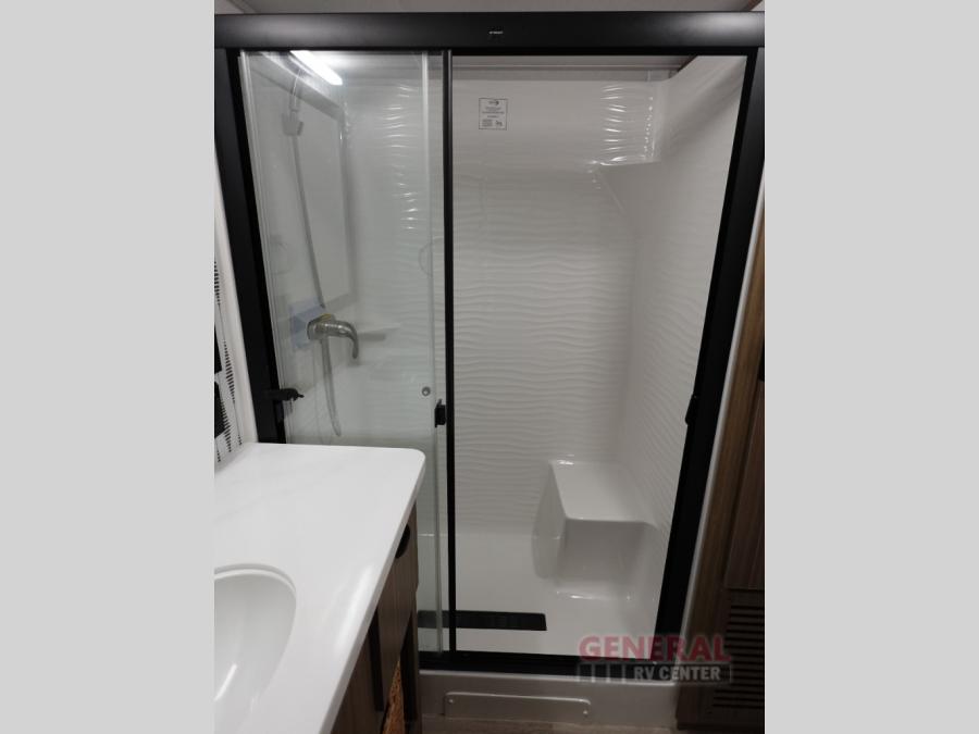 With any Wildwood Grand Lodge destination trailer by Forest River, you can enjoy extended stays wherever you go! There is 4K awning blade lighting outside, along with slide out awning toppers, plus a heated and enclosed Accessibelly for added protection. Inside, you'll love the stylish backsplash update, elegant curtain rods and curtains, TFL black walnut entertainment shelves, and stainless steel kitchen appliances. A Serta mattress in the bedroom(s) will provide comfort to each journey, and there is a tankless water heater for hot water when you need it.
