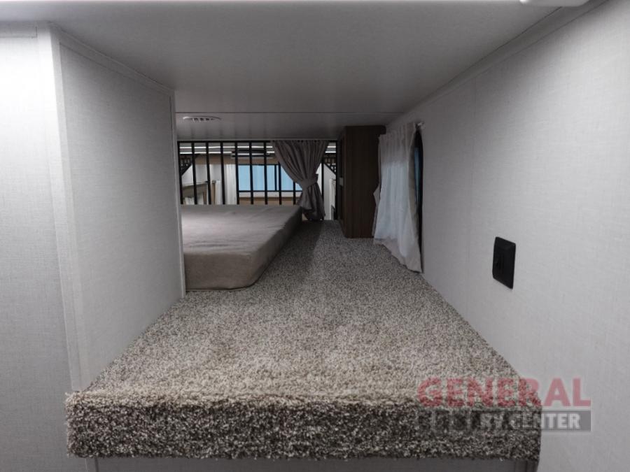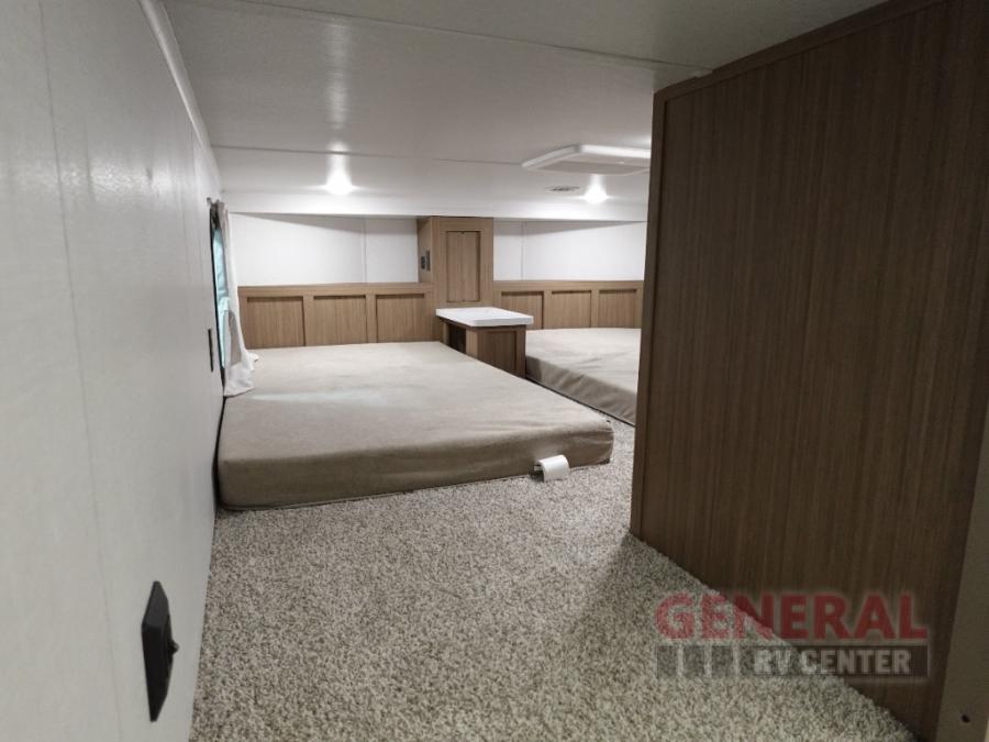 Choose a quiet spot in the woods or a fun location on the lake for your Wildwood Grand Lodge destination trailer by Forest River. Everyone will enjoy the spacious rooms with three slides throughout, and the double loft provides three bunk mats that your children or grandchildren will love. Dual entry door include a set of patio doors for the main entrance plus a private entry door that leads into the front master bedroom for added convenience. You will love the large walk-in pantry for all of your non-perishables and the kitchen island that provides extra counter space to prep and serve your meals.  And there is much more to enjoy each time you stay in this Grand Lodge.