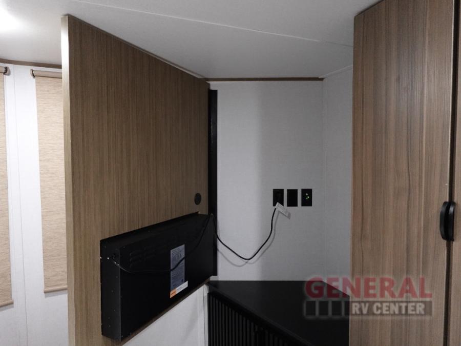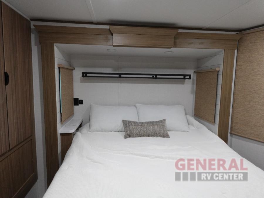 You just can't beat the Forest River Wildwood Lodge destination trailer! These trailers create the perfect camping destination in and of themselves. There is a new retro/metal redesign that is sure to turn heads at the campground, and the heated and enclosed Accessibelly provides added protection against the elements. Each model includes stainless steel kitchen appliances, a central vacuum with a sweep attachment, a Serta mattress, and kitchen backsplash to name a few comforts. Additional stand-out features include TFL cabinet doors, LED "Blade Lighting' under the awning, stylish roller shades, plus Lippert On-The-Go ladder prep for the option to add a ladder.