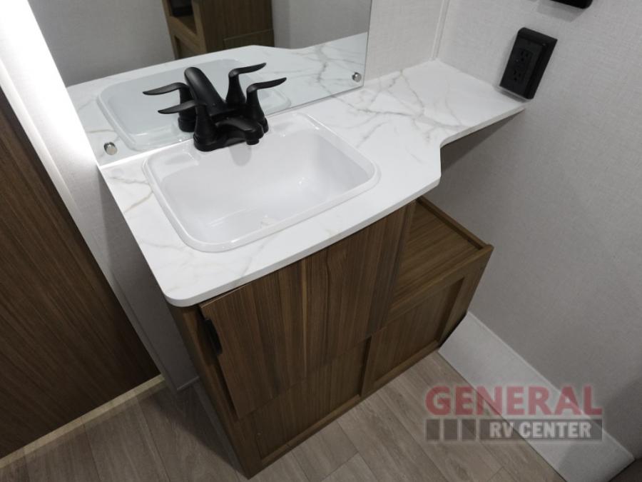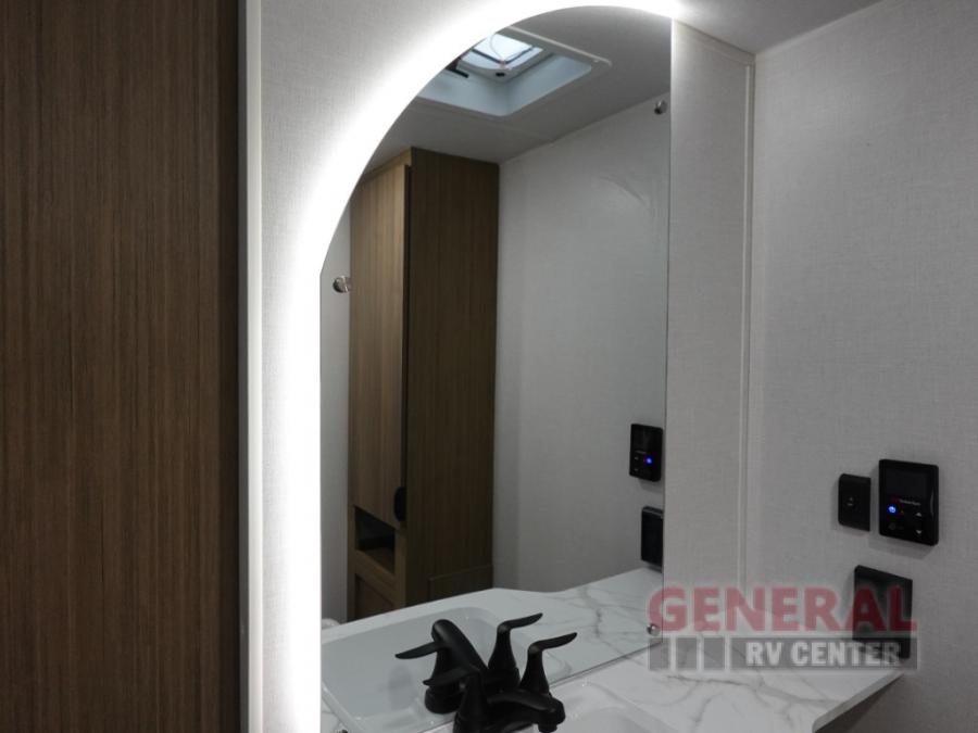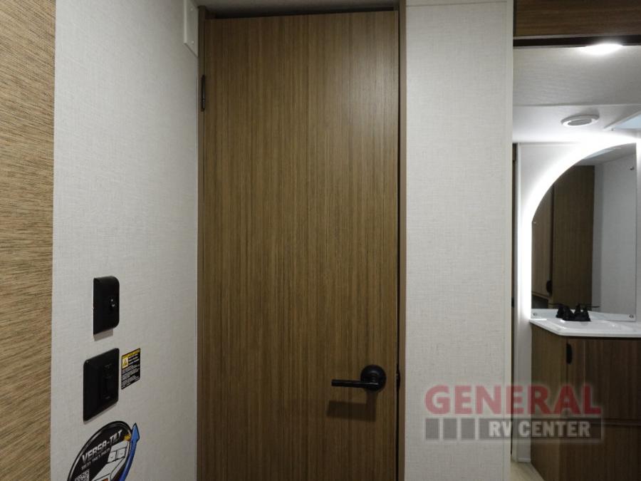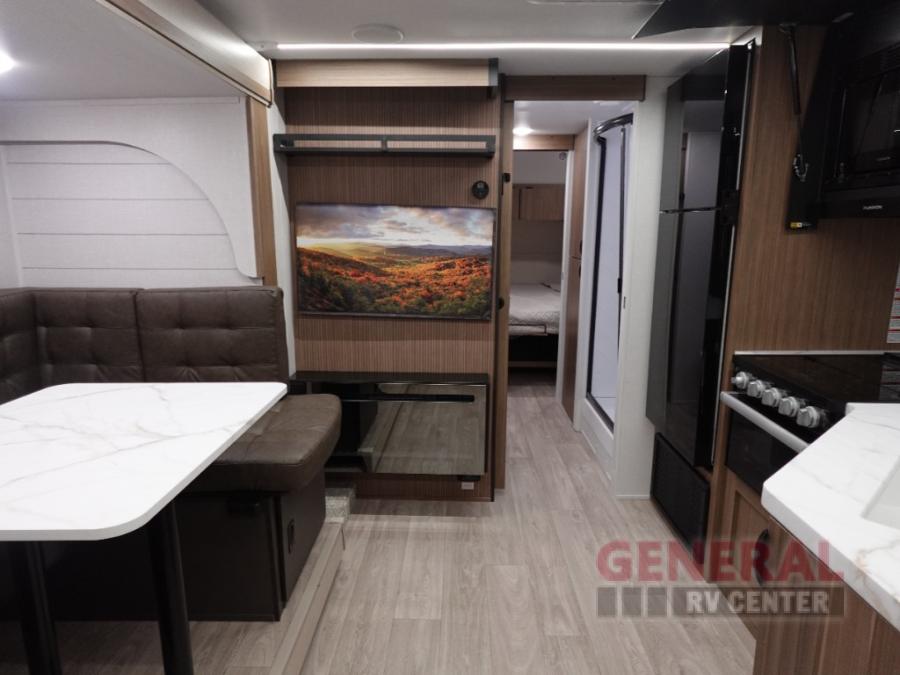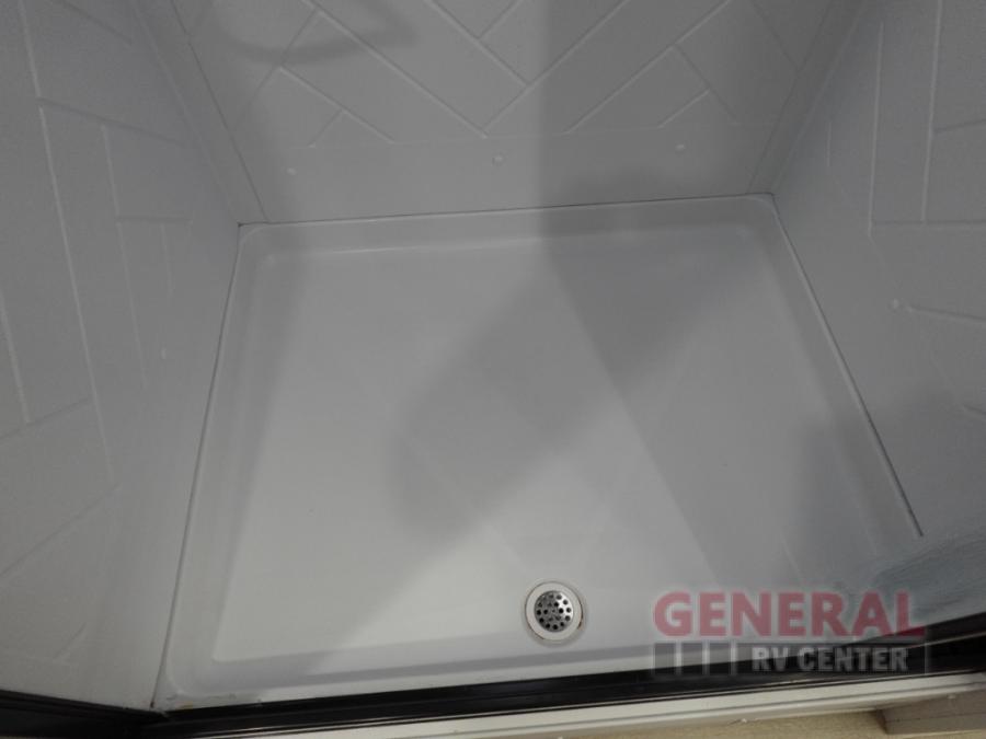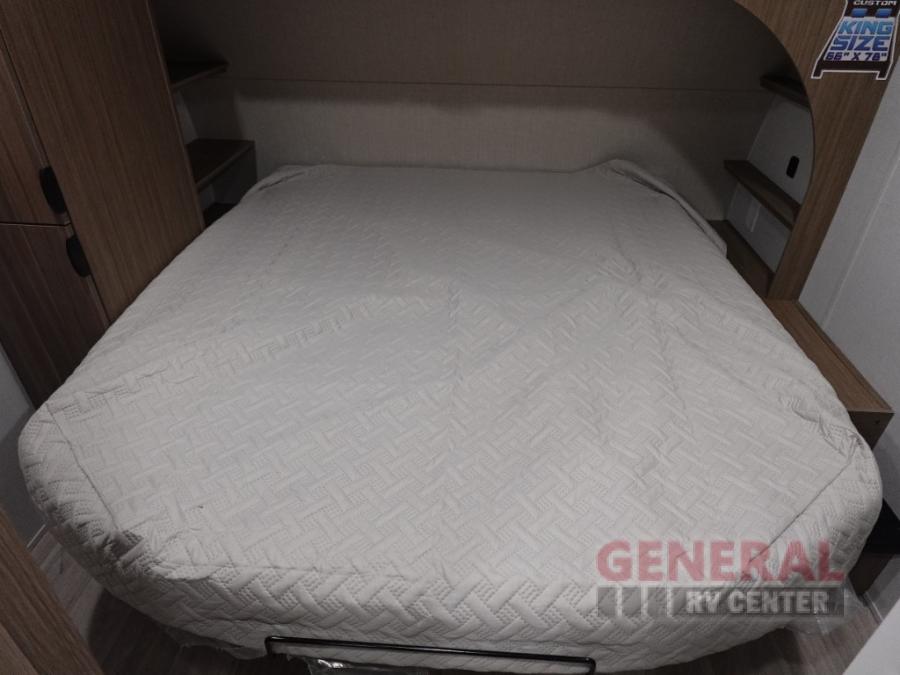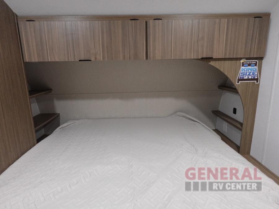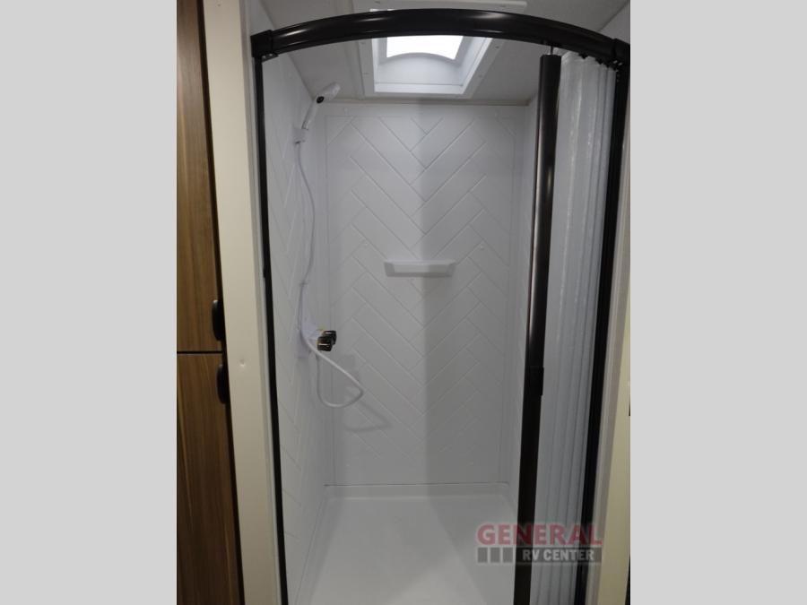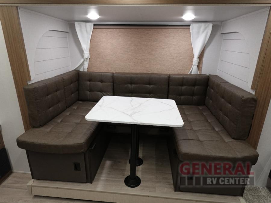 Whether it's a family vacation or a romantic getaway with your significant other, this Wildwood X-Lite travel trailer will make it the very best! The master bedroom has many places to store items with the walk-in closet and bedside closets plus nightstands, and the walk-through bath also provides additional storage with a linen closet and vanity. There is also a custom king bed with Versa-Tilt you are sure to enjoy. The kitchen has modern amenities, like a 12V refrigerator and cooktop, plus the U-shaped dinette has panoramic windows that surround it to create an inviting space to spend your time.  And you will enjoy the protection from the 16' awning when relaxing outdoors.