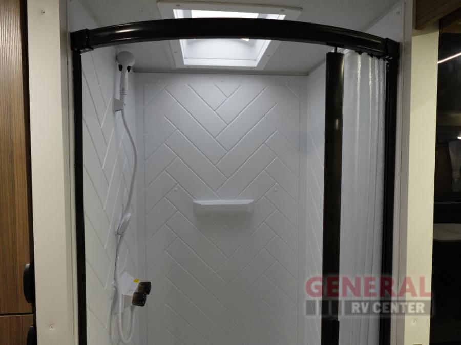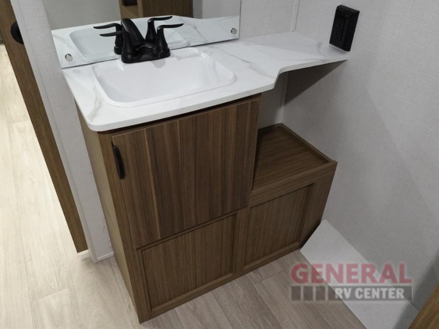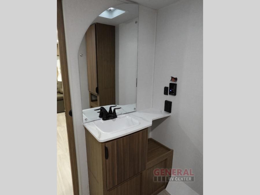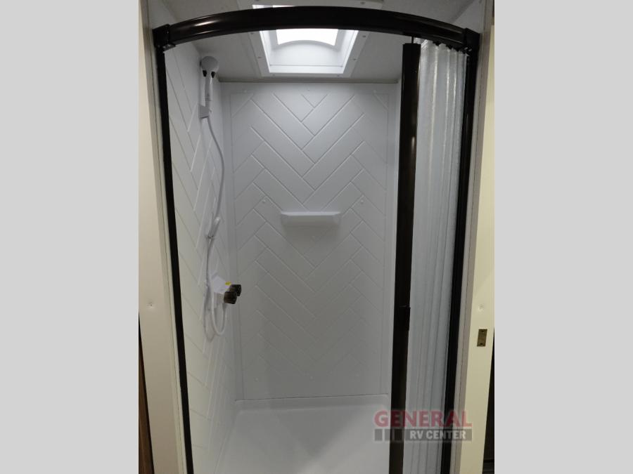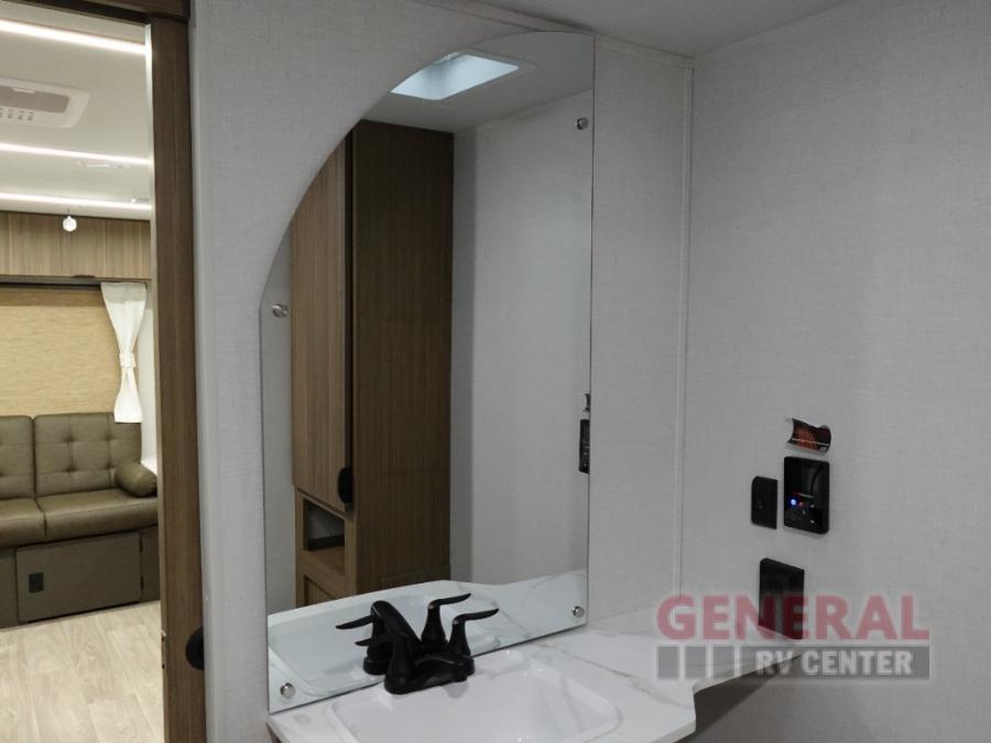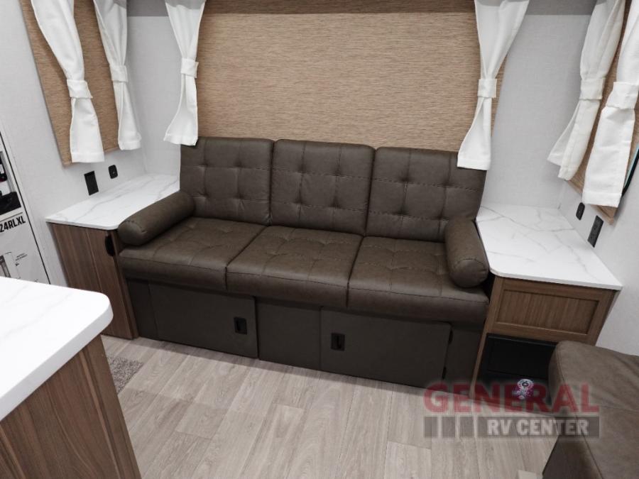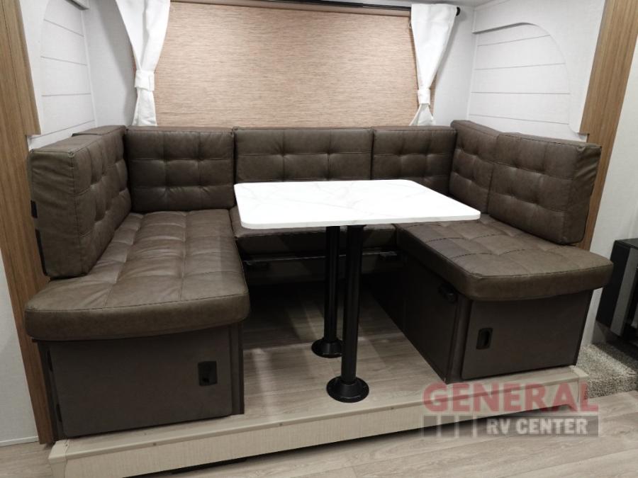 Whether it's a family vacation or a romantic getaway with your significant other, this Wildwood X-Lite travel trailer will make it the very best! The master bedroom has many places to store items with the walk-in closet and bedside closets plus nightstands, and the walk-through bath also provides additional storage with a linen closet and vanity. There is also a custom king bed with Versa-Tilt you are sure to enjoy. The kitchen has modern amenities, like a 12V refrigerator and cooktop, plus the U-shaped dinette has panoramic windows that surround it to create an inviting space to spend your time. And you will enjoy the protection from the 16' awning when relaxing outdoors.
