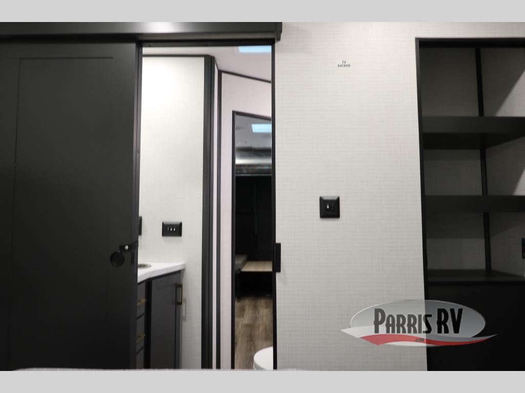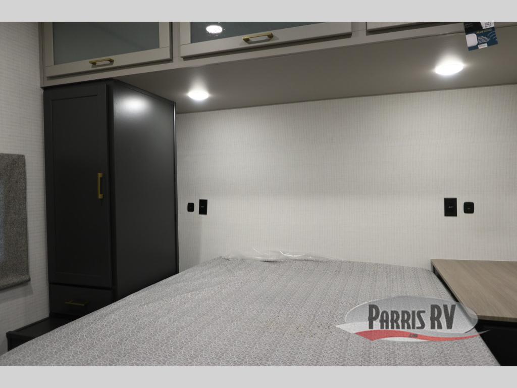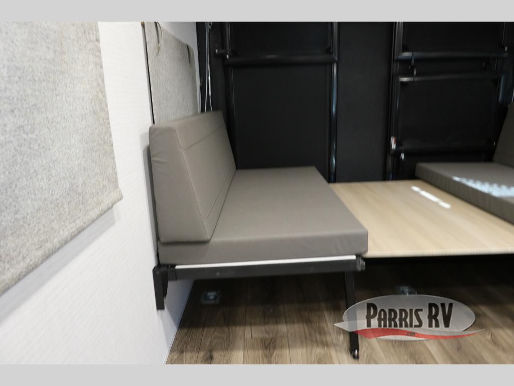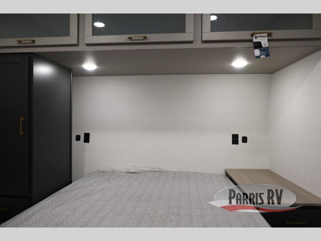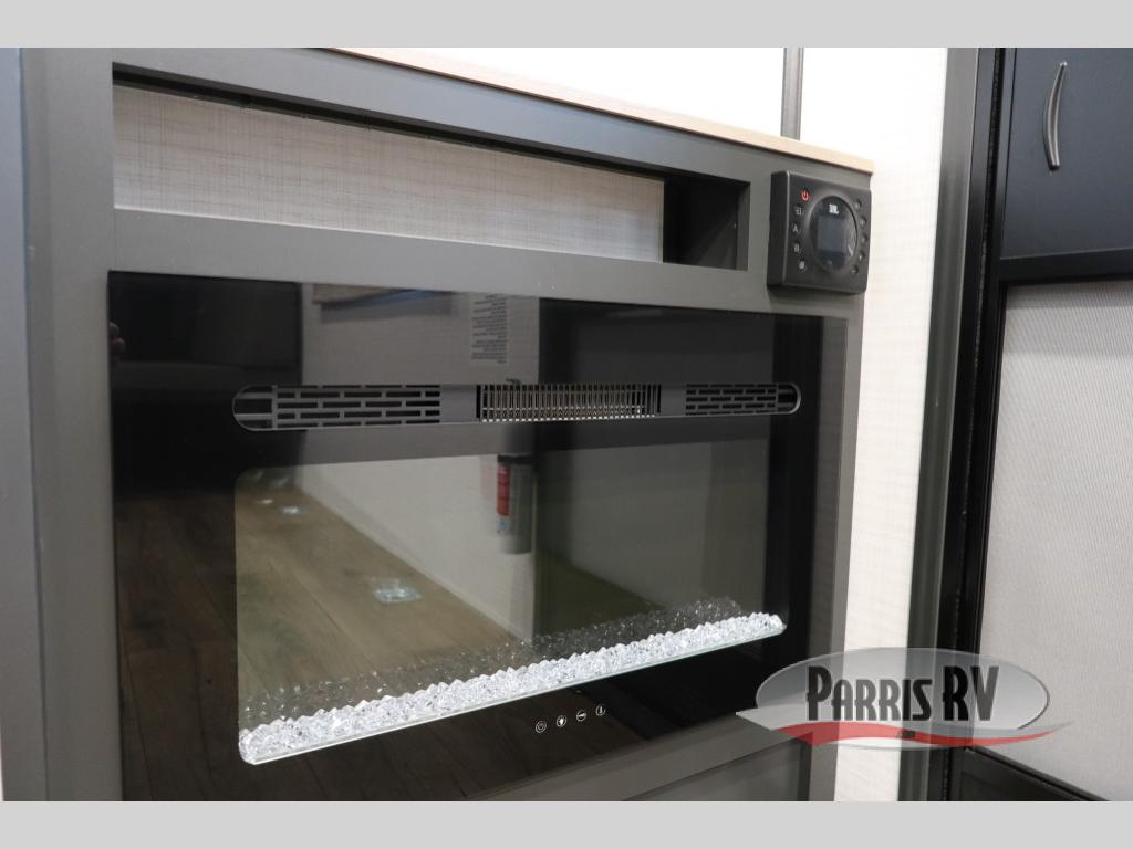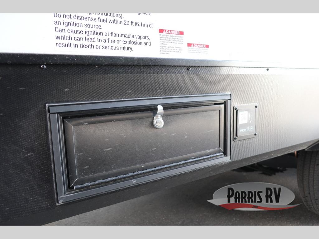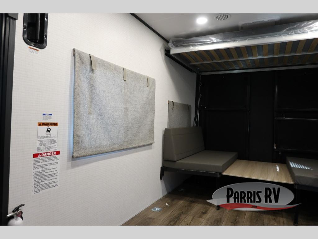 This toy hauler with a 14' 6" garage is sure to meet all your camping needs! Once you unload using the 3,000 lb. capacity ramp door, you can enjoy the 1,500 lb. capacity patio deck and enjoy a cold drink. There is seating space on the dual gaucho sofas with a table in between, and your guests can sleep on the queen-size Euro bed lift above. A full kitchen lets you cook meals each day, and the fireplace will make your space feel more like home. There is a walk-thru bath that leads to the front master bedroom where you'll find an RV queen bed, dual wardrobes and nightstands plus a closet to keep clothes wrinkle-free!