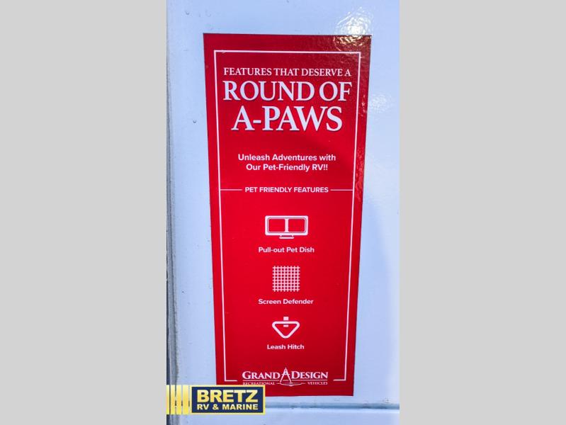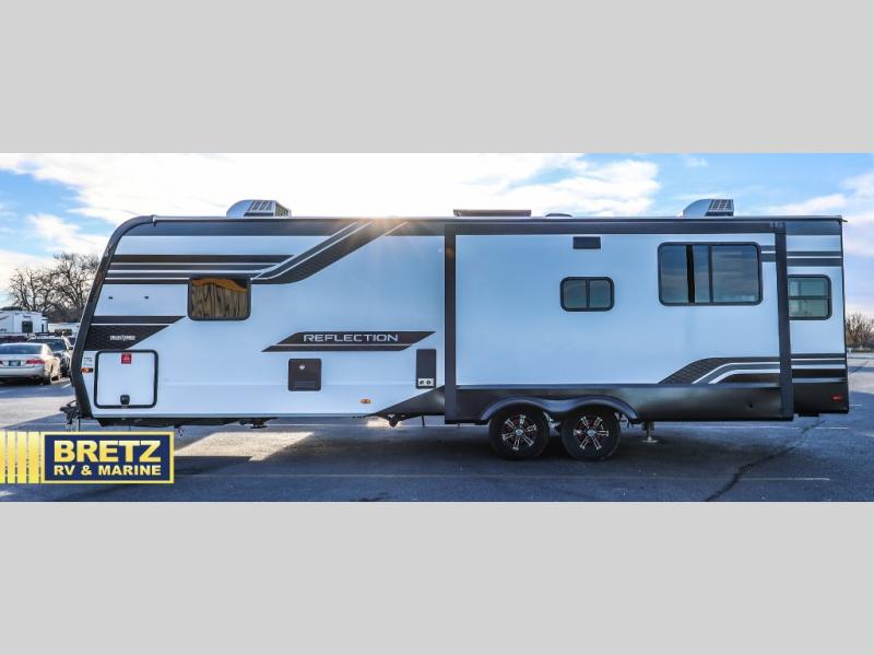 With any Reflection travel trailer by Grand Design, you will have a solar panel for off-grid camping and a 60 amp charge controller and inverter prep, a Universal All-In-One docking station, unobstructed pass-through storage, and Goodyear Endurance tires. Each is constructed of gel coat exterior sidewalls, residential 5" truss rafters, walk-on roof decking, a fiberglass and radiant foil roof and front cap insulation plus laminated aluminum framed side walls, roof and end walls in slide rooms. Head inside to enjoy residential hardwood cabinet doors, premium Congoleum flooring, a spacious shower with a glass door, and many more comforts!