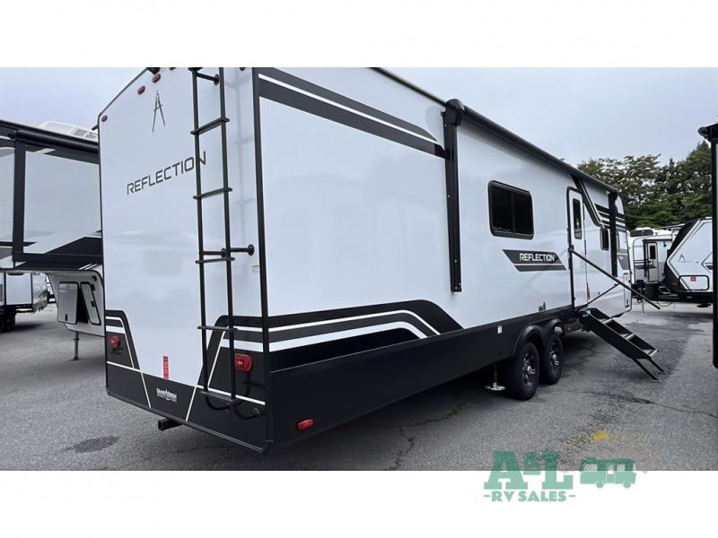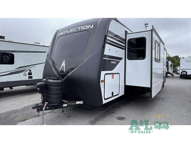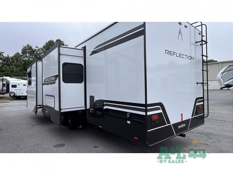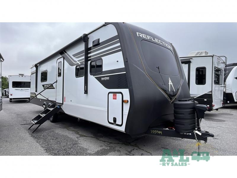 With any Reflection travel trailer by Grand Design, you will have a solar panel for off-grid camping and a 60 amp charge controller and inverter prep, a Universal All-In-One docking station, unobstructed pass-through storage, and Goodyear Endurance tires. Each is constructed of gel coat exterior sidewalls, residential 5" truss rafters, walk-on roof decking, a fiberglass and radiant foil roof and front cap insulation plus laminated aluminum framed side walls, roof and end walls in slide rooms. Head inside to enjoy residential hardwood cabinet doors, premium Congoleum flooring, a spacious shower with a glass door, and many more comforts!