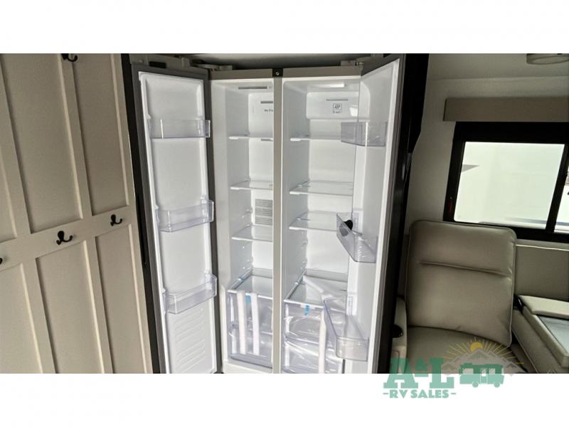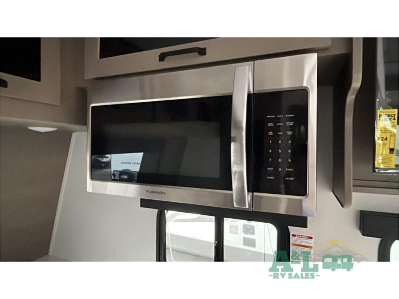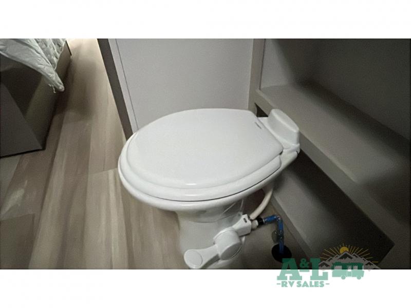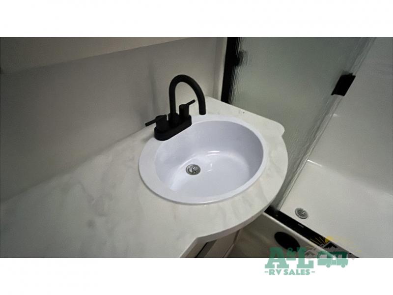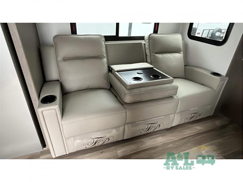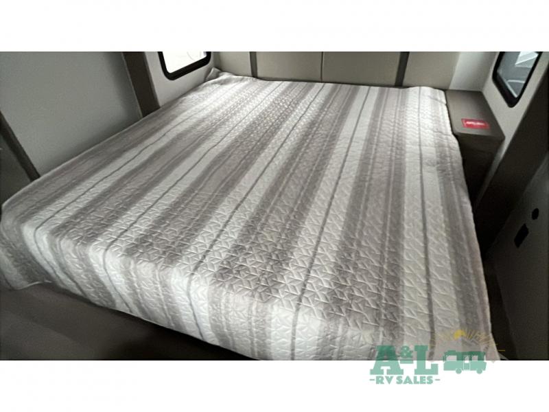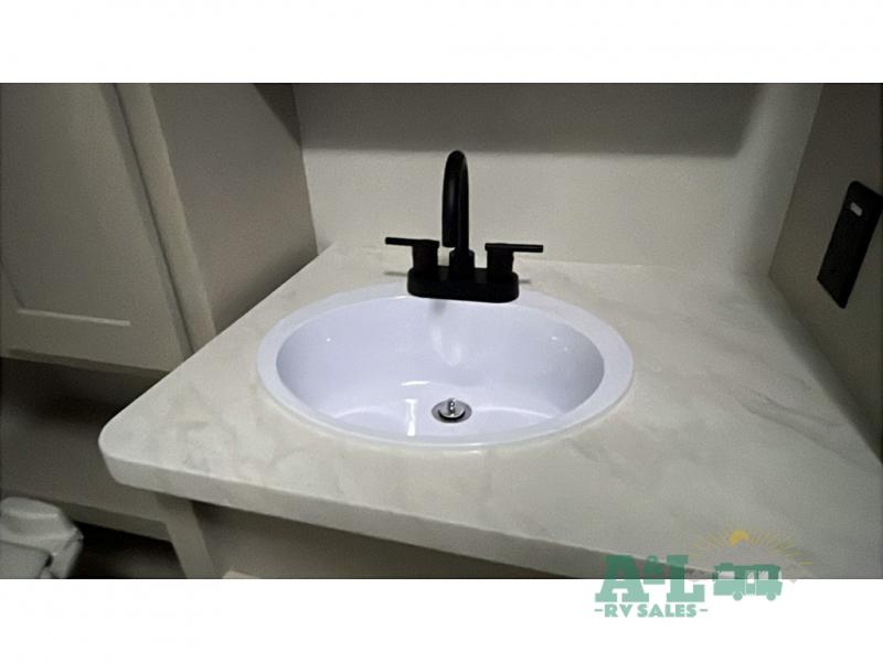 This front kitchen travel trailer will be perfect for camping trips to the lake or woods! There is ample counter space to prep your best meals, including an L-shaped kitchen counter with a bar stool to enjoy your coffee at. The theater seating is inviting, and you can choose the optional tri-fold sofa and end table or optional U-shaped dinette if you need more sleeping space for guests. This unit features a massive master bedroom with a queen bed slide and optional king bed, two closets, and a spacious rear bath. There are two bath sinks here, a 30" x 48" shower, plus washer and dryer prep if you choose to add these appliances!