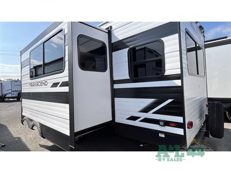 With any Transcend travel trailer by Grand Design, you will enjoy upscale appointments and convenient amenities to make each camping experience one to remember! The Quad Seal technology, residential insulated walls, plus heated and enclosed underbelly with suspended tanks make these units solid and durable. There is a black automotive glass door outside, along with a Safe-T-Rail assist on the main entry door, backup camera prep, and a universal docking station. JBL interior and exterior speakers plus a JBL head unit will let you listen to your favorite tunes as you visit under the power awning with LED strip lights. Inside, you'll enjoy multiple outlets to keep your gadgets charged, thermoformed and seamless countertops, and a 6' 6" interior height so you won't feel closed in. The Solar Prep Package will allow you to enjoy off-grid capabilities with a 200W solar panel, which is wired for up to 600W, a 30 AMP Bluetooth solar controller, a 2000W inverter prep, and more!
