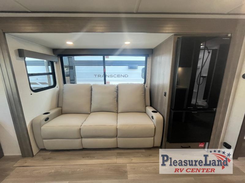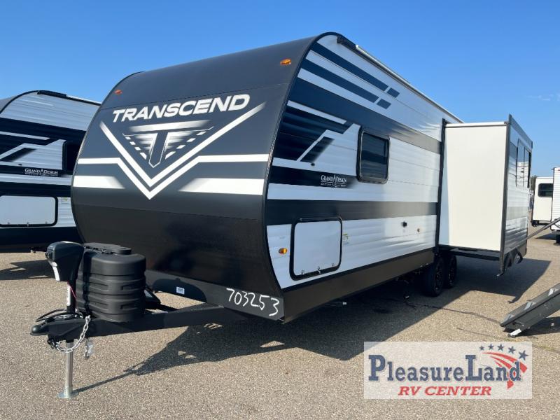 With any Transcend travel trailer by Grand Design, you will enjoy upscale appointments and convenient amenities to make each camping experience one to remember! The Quad Seal technology, residential insulated walls, plus heated and enclosed underbelly with suspended tanks make these units solid and durable. There is a black automotive glass door outside, along with a Safe-T-Rail assist on the main entry door, backup camera prep, and a universal docking station. JBL interior and exterior speakers plus a JBL head unit will let you listen to your favorite tunes as you visit under the power awning with LED strip lights. Inside, you'll enjoy multiple outlets to keep your gadgets charged, thermoformed and seamless countertops, and a 6' 6" interior height so you won't feel closed in. The Solar Prep Package will allow you to enjoy off-grid capabilities with a 200W solar panel, which is wired for up to 600W, a 30 AMP Bluetooth solar controller, a 2000W inverter prep, and more!