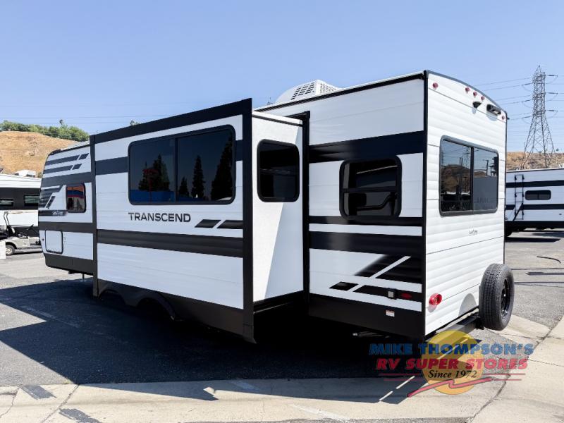 With any Transcend travel trailer by Grand Design, you will enjoy upscale appointments and convenient amenities to make each camping experience one to remember! The Quad Seal technology, residential insulated walls, plus heated and enclosed underbelly with suspended tanks make these units solid and durable. There is a black automotive glass door outside, along with a Safe-T-Rail assist on the main entry door, backup camera prep, and a universal docking station. JBL interior and exterior speakers plus a JBL head unit will let you listen to your favorite tunes as you visit under the power awning with LED strip lights. Inside, you'll enjoy multiple outlets to keep your gadgets charged, thermoformed and seamless countertops, and a 6' 6" interior height so you won't feel closed in. The Solar Prep Package will allow you to enjoy off-grid capabilities with a 200W solar panel, which is wired for up to 600W, a 30 AMP Bluetooth solar controller, a 2000W inverter prep, and more!