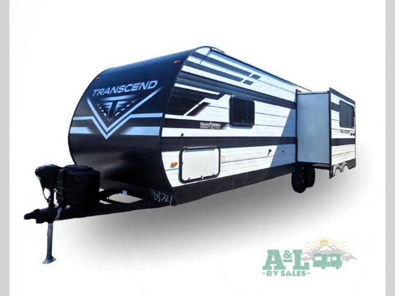 With any Transcend travel trailer by Grand Design, you will enjoy upscale appointments and convenient amenities to make each camping experience one to remember! The Quad Seal technology, residential insulated walls, plus heated and enclosed underbelly with suspended tanks make these units solid and durable. There is a black automotive glass door outside, along with a Safe-T-Rail assist on the main entry door, backup camera prep, and a universal docking station. JBL interior and exterior speakers plus a JBL head unit will let you listen to your favorite tunes as you visit under the power awning with LED strip lights. Inside, you'll enjoy multiple outlets to keep your gadgets charged, thermoformed and seamless countertops, and a 6' 6" interior height so you won't feel closed in. The Solar Prep Package will allow you to enjoy off-grid capabilities with a 200W solar panel, which is wired for up to 600W, a 30 AMP Bluetooth solar controller, a 2000W inverter prep, and more!