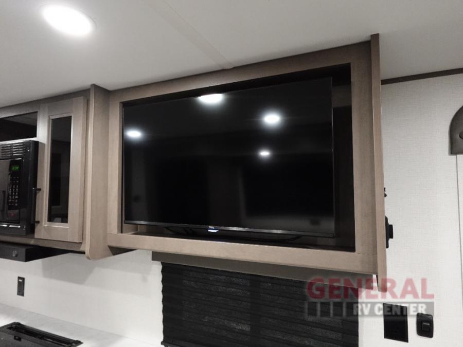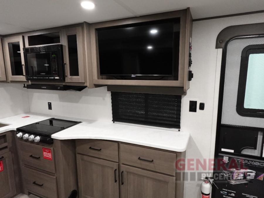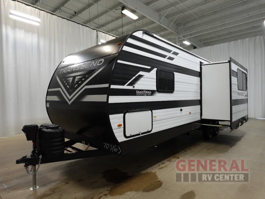 With any Transcend travel trailer by Grand Design, you will enjoy upscale appointments and convenient amenities to make each camping experience one to remember! The Quad Seal technology, residential insulated walls, plus heated and enclosed underbelly with suspended tanks make these units solid and durable. There is a black automotive glass door outside, along with a Safe-T-Rail assist on the main entry door, backup camera prep, and a universal docking station. JBL interior and exterior speakers plus a JBL head unit will let you listen to your favorite tunes as you visit under the power awning with LED strip lights. Inside, you'll enjoy multiple outlets to keep your gadgets charged, thermoformed and seamless countertops, and a 6' 6" interior height so you won't feel closed in. The Solar Prep Package will allow you to enjoy off-grid capabilities with a 200W solar panel, which is wired for up to 600W, a 30 AMP Bluetooth solar controller, a 2000W inverter prep, and more!