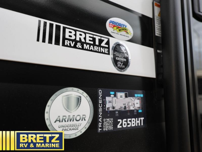 With any Transcend travel trailer by Grand Design, you will enjoy upscale appointments and convenient amenities to make each camping experience one to remember! The Quad Seal technology, residential insulated walls, plus heated and enclosed underbelly with suspended tanks make these units solid and durable. There is a black automotive glass door outside, along with a Safe-T-Rail assist on the main entry door, backup camera prep, and a universal docking station. JBL interior and exterior speakers plus a JBL head unit will let you listen to your favorite tunes as you visit under the power awning with LED strip lights. Inside, you'll enjoy multiple outlets to keep your gadgets charged, thermoformed and seamless countertops, and a 6' 6" interior height so you won't feel closed in. The Solar Prep Package will allow you to enjoy off-grid capabilities with a 200W solar panel, which is wired for up to 600W, a 30 AMP Bluetooth solar controller, a 2000W inverter prep, and more!