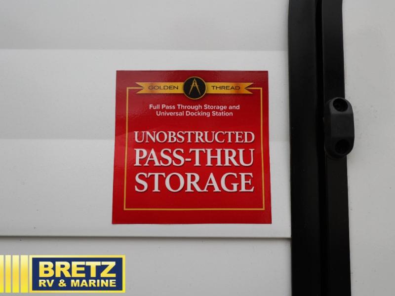 Your crew of eight will love camping in this spacious travel trailer! There are double-size bunks in the back with step storage and an added wardrobe for your guests' things plus exterior storage for camp gear galore. A walk-thru bath will create a front master bedroom you are sure to love, especially with its queen bed, wardrobe storage, and private exterior entry door! The main living area will be a favorite place to hang out with its U-shaped dinette, theater seating and 32" TV. If the weather is nice, you may just find yourselves outdoors since there is a rear exterior griddle and 1.7 cu. ft. refrigerator!