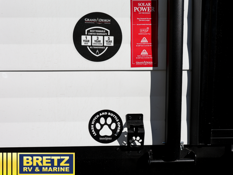 With any Transcend travel trailer by Grand Design, you will enjoy upscale appointments and convenient amenities to make each camping experience one to remember! The Quad Seal technology, residential insulated walls, plus heated and enclosed underbelly with suspended tanks make these units solid and durable. There is a black automotive glass door outside, along with a Safe-T-Rail assist on the main entry door, backup camera prep, and a universal docking station. JBL interior and exterior speakers plus a JBL head unit will let you listen to your favorite tunes as you visit under the power awning with LED strip lights. Inside, you'll enjoy multiple outlets to keep your gadgets charged, thermoformed and seamless countertops, and a 6' 6" interior height so you won't feel closed in. The Solar Prep Package will allow you to enjoy off-grid capabilities with a 200W solar panel, which is wired for up to 600W, a 30 AMP Bluetooth solar controller, a 2000W inverter prep, and more!