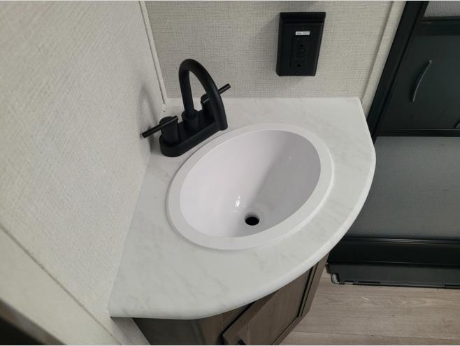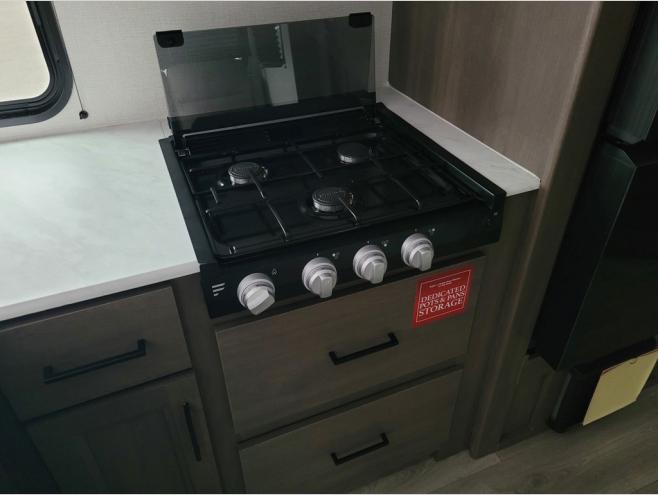 This fantastic travel trailer is designed to provide the ultimate in comfort, convenience, and adventure! The double-size bunk beds are perfect for kids, providing ample sleeping space and an under-bed storage space for all your belongings. The full bathroom features a linen closet, providing convenient storage for towels and toiletries. In the kitchen area, the U-shaped dinette is a great spot for creating memories that will last a lifetime, the refrigerator keeps your food and drinks fresh, while the microwave provides a quick and easy way to prepare meals. And for major convenience, the pull-out trash makes cleaning up a simple task. Take a nap in the comfortable front queen bed, which is a serene retreat, providing a comfortable spot to rest and relax. Jump to the exterior in a comfortable way with the double entry/exit door providing added convenience and flexibility, while the exterior awning provides shade and protection from the elements. The pass-through storage offers ample space for your outdoor gear and equipment.