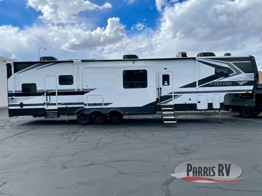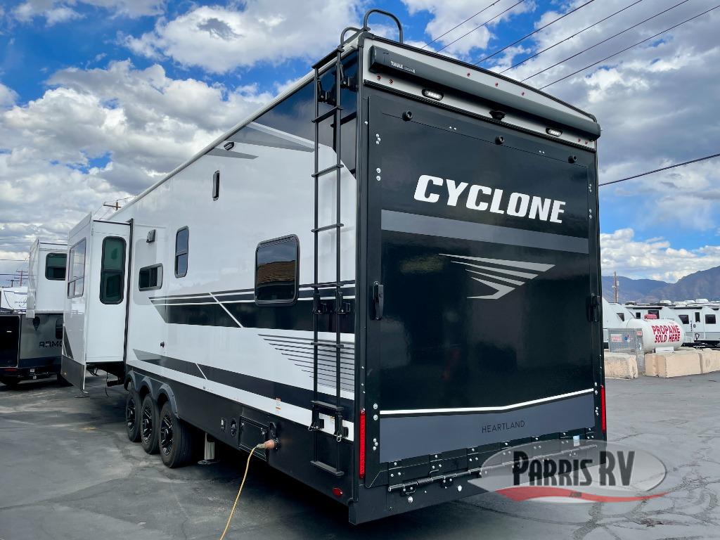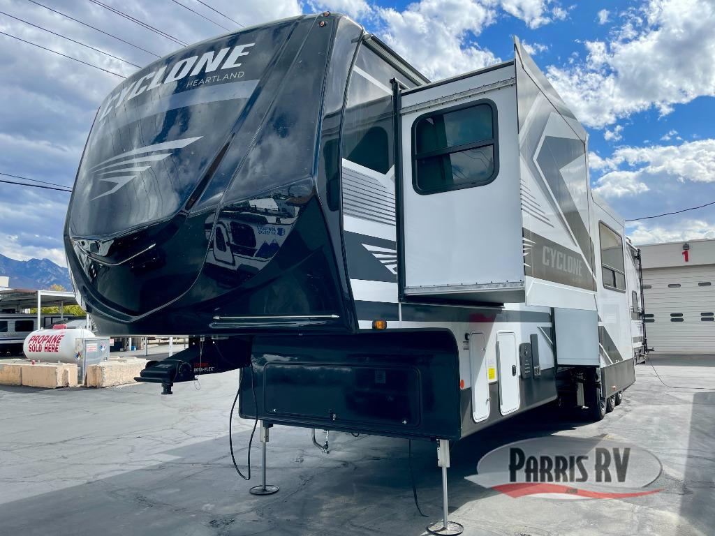 Satisfy your wanderlust with a Heartland Cyclone fifth wheel toy hauler! You won't have to sacrifice any luxury either, with indulgent features like the ducted, fully enclosed, and heated underbelly provides added protection and warmth. Inside, the LED interior lighting throughout ensures that every corner of your RV is bright and inviting, and the bathroom skylight brings in natural light and fresh air, creating a welcoming and refreshing space. Plus, the central command center with built-in tank monitoring keeps you informed and in control, making it easy to manage your resources. Also, the Premium Exterior Package includes diverse features such as Dexter axles with ABS and tow assist with sway mitigation, and the Keyed-Alike lock system ensures that all your locks are keyed the same, providing added security and convenience. Come find the perfect model for you today!