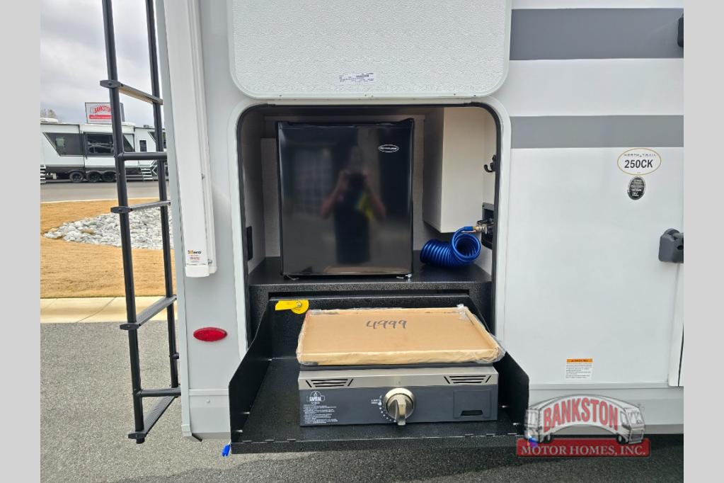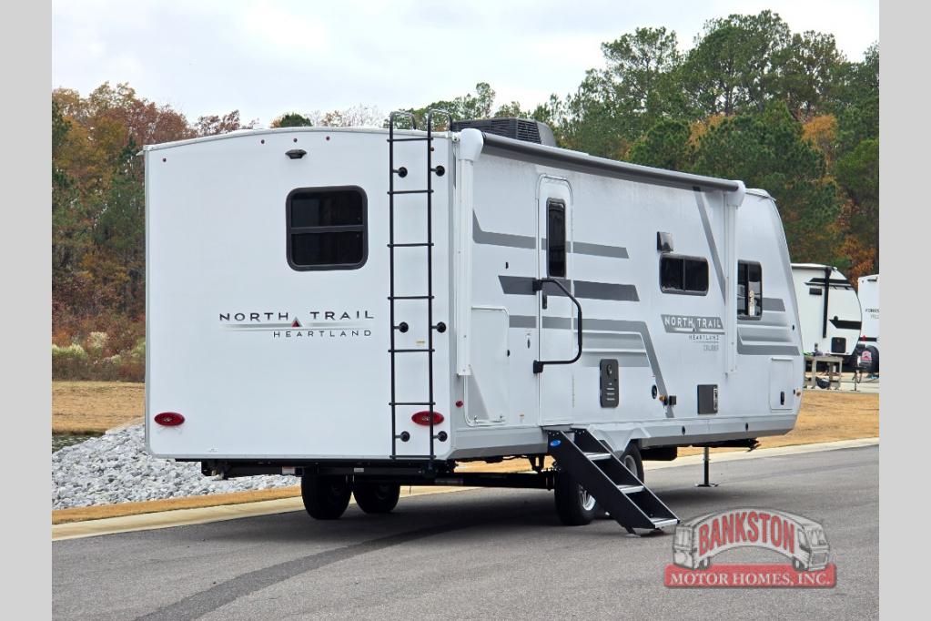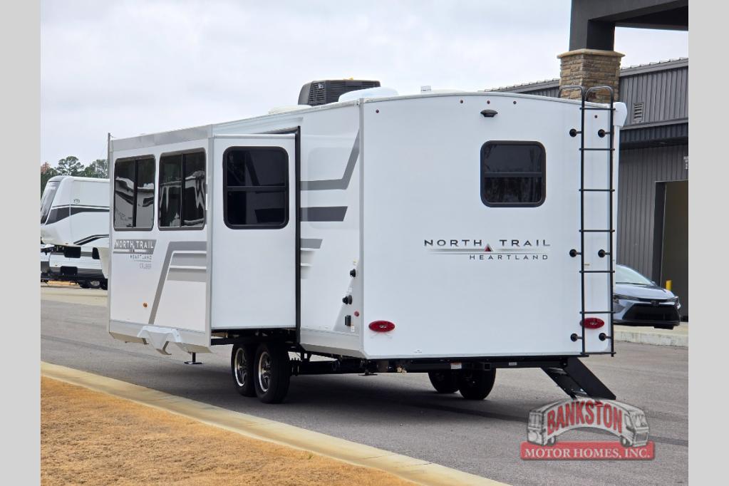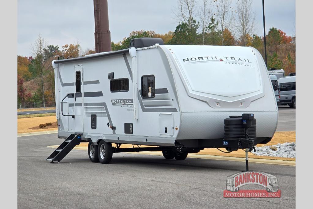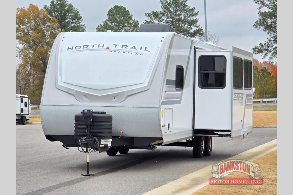 Built for comfort, durability, and modern convenience, these Heartland North Trail travel trailers offer everything you need for a premium camping experience. Each model features a strong American-made Norco Z-frame with an aerodynamic front profile and front diamond plating for added protection. The exclusive TrusstXL Roof System and CoreShield vacuum-bonded walls with Azdel provide superior insulation. Inside, enjoy residential comforts like seamless countertops, solid hardwood maple cabinet doors, LED lighting throughout, and 60 x 80 in. queen beds or 60 x 76 in. Murphy beds. Tech-ready features include an LED smart TV, USB ports, TPMS monitoring, and a 200W solar panel with 30 AMP digital controller. With a Quiet Series A/C, on-demand 60K BTU water heater, with these trailers you are equipped to make every trip comfortable and adventure-ready.