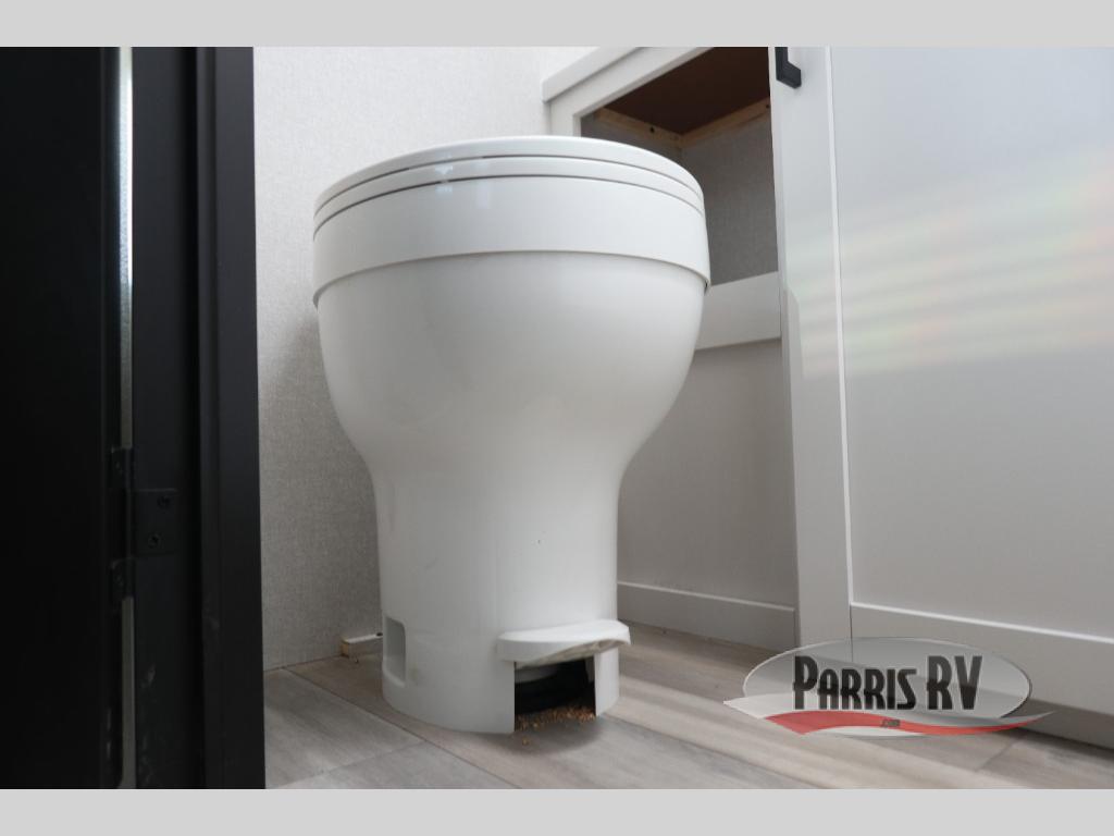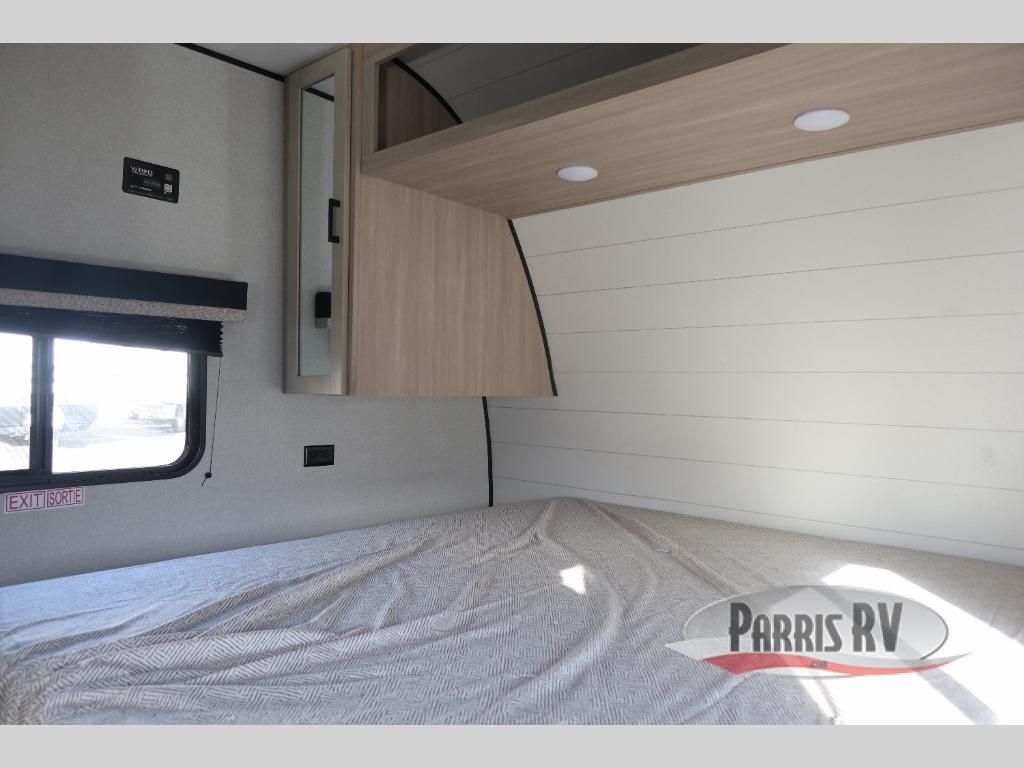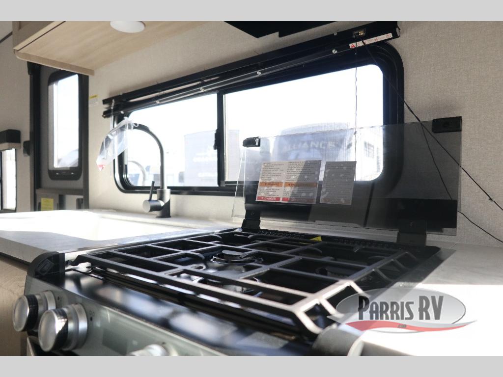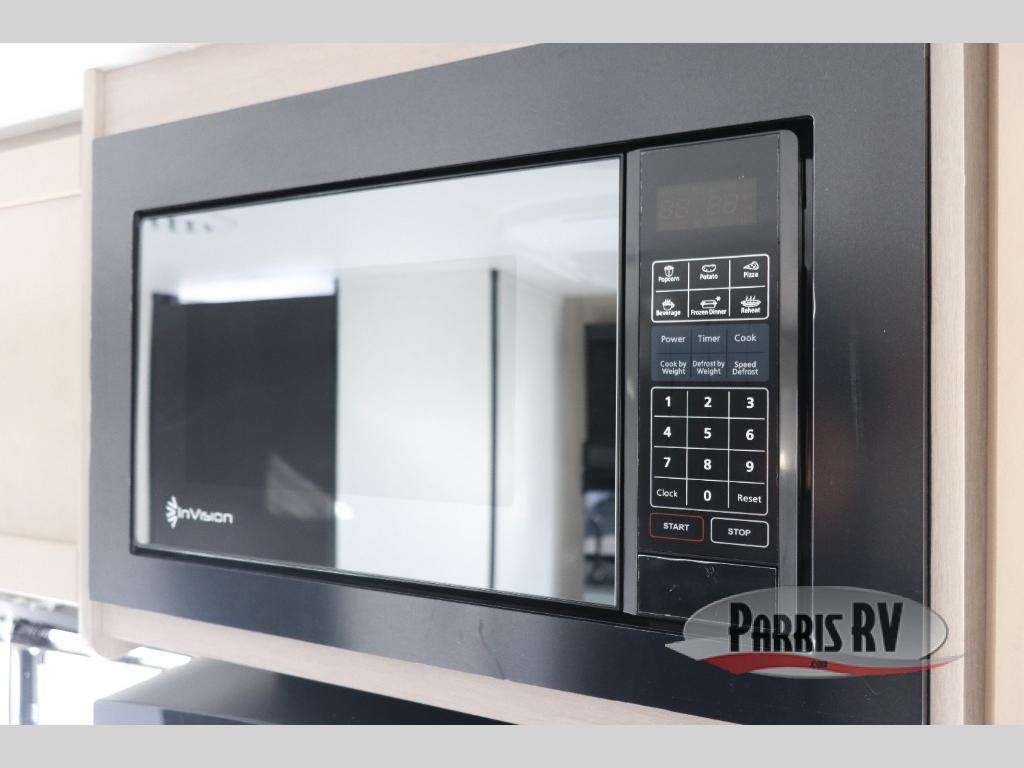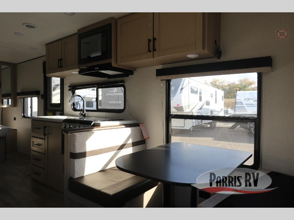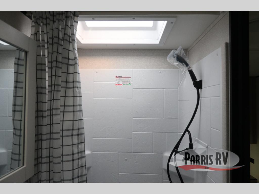 Weekend trips to the campground will be made unforgettable in this travel trailer for five to six. You will enjoy your own space in the front bedroom with a privacy curtain, RV queen bed and dual bedside wardrobes to keep your things tidy. If you have any guests staying over, then can convert the jack knife sofa and booth dinette back into seating spaces for breakfast in the morning. Speaking of breakfast, you'll have a three-burner cooktop and microwave oven to cook eggs and bacon, plus an 8-cu. ft. 12V refrigerator and pantry for food storage.