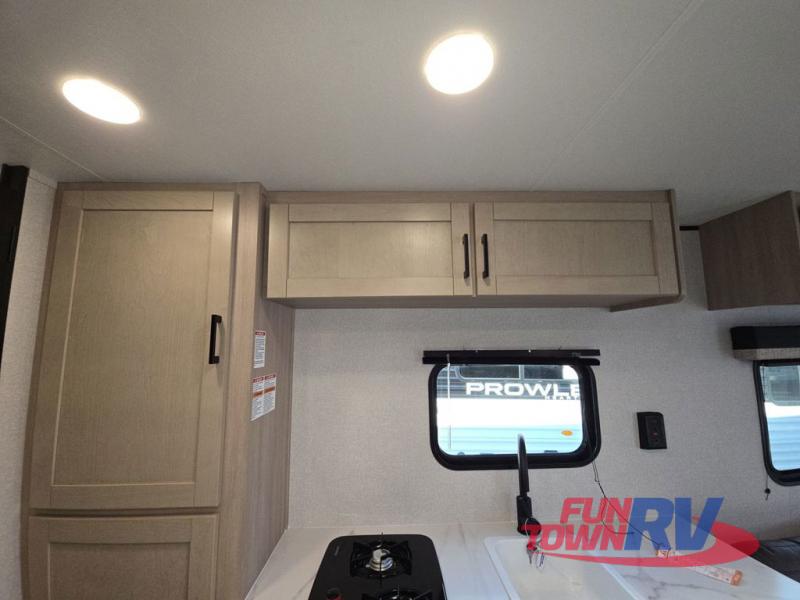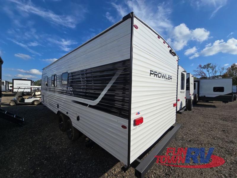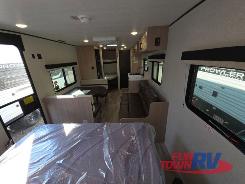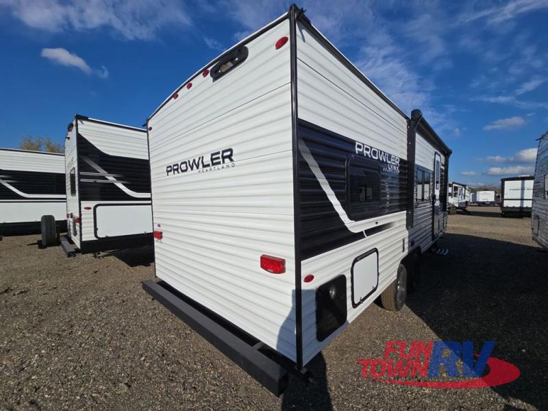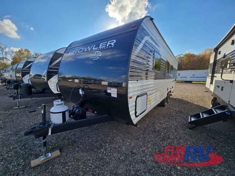 With any Prowler travel trailer, you will enjoy convenient amenities and at-home comforts wherever you decide to camp! Each one is built with a durable fully integrated A-frame, a TrussXL roof system, and galvanized wheel wells. And the self-adjusting brakes, easy-lube axles and nitrogen filled radial tires will provide smooth towing. Inside, you'll enjoy vinyl flooring throughout that will be easy to keep clean, durable, residential-inspired kitchen countertops, a residential-style high-rise kitchen faucet, and solid hardwood cabinet doors with hidden hinges and screwed stile construction. The mandatory Camping in Comfort Package includes a large folding entry door grab handle, MORryde Step Above entry steps, an on-demand tankless water heater, and stylish window shades. There are also available options that vary between single and double axle units that will allow you to customize your Prowler to fit your needs!