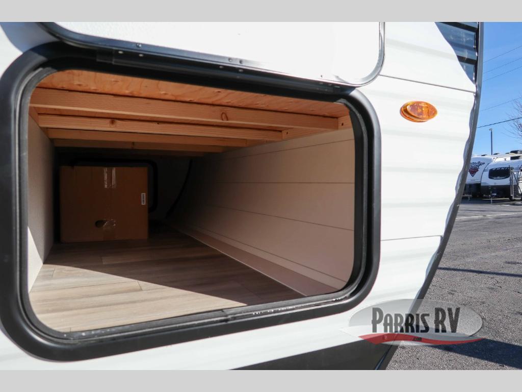 The whole gang will love weekends in the woods with this travel trailer in tow! There is a large slide out for added space, and here you'll find the jack-knife sofa and booth dinette. There is also an entertainment center with a fireplace with a hidden pantry behind, along with storage shelves for snacks, board games and more! You can claim the front private bedroom to yourselves, while your guests or little ones take the double-size bunks. A full kitchen is complete with a three-burner cooktop and microwave oven to make meals each day, plus a 12V refrigerator and pantry for food storage. This unit also includes an outdoor kitchen with a refrigerator to keep cold drinks ready to enjoy!