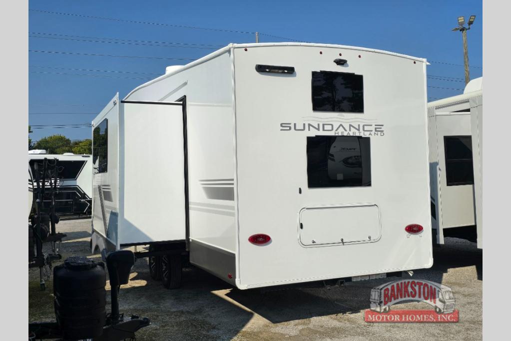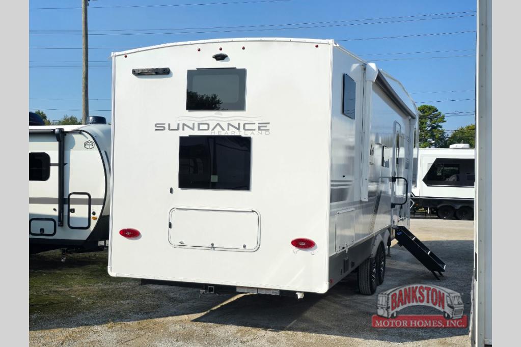 Each Heartland Sundance Fifth Wheel features ThermaShield, a zero-degree tested weather protection system that ensures comfort. This system features a fully enclosed and heated underbelly (ducted) that protects vital systems and provides warmth in cold climates. The AeroChill directional cooling system offers precise temperature control, creating a refreshing and comfortable atmosphere. Inside, you can stay connected on the go with the multiple USB-C 12V charging ports, and the Winegard Air 360 4G + Antenna & router prep that ensures reliable internet connectivity and seamless streaming. The units boast 5/8 in. tongue-and-groove plywood flooring, providing a sturdy and durable foundation, a Keyed-Alike lock system, and the rainproof bathroom power vent ensures a comfortable bathroom experience, removing moisture and odors efficiently.