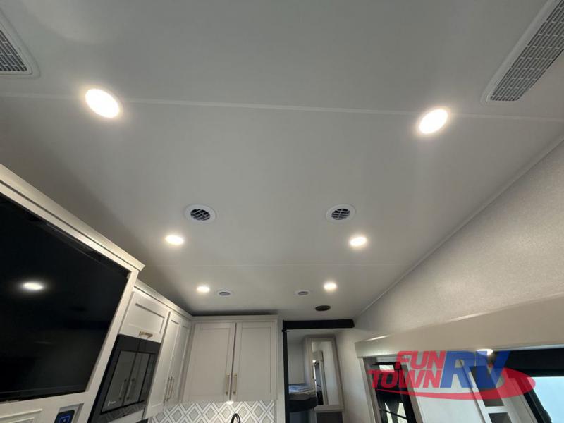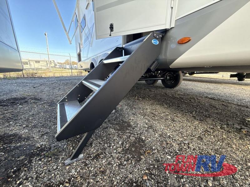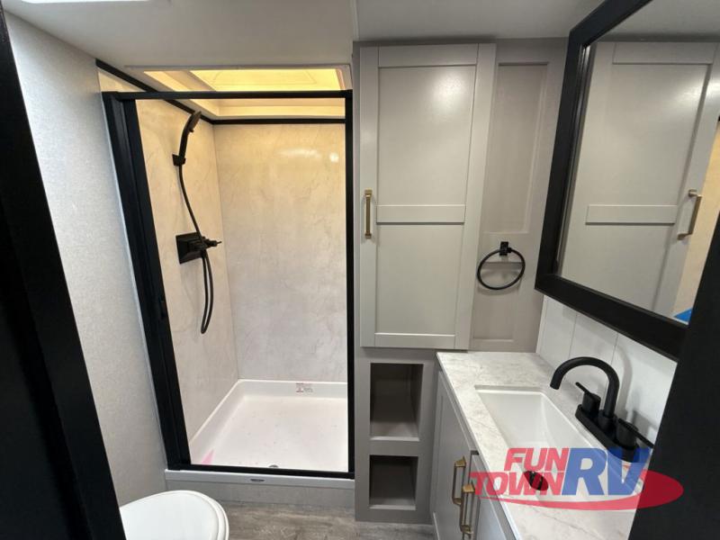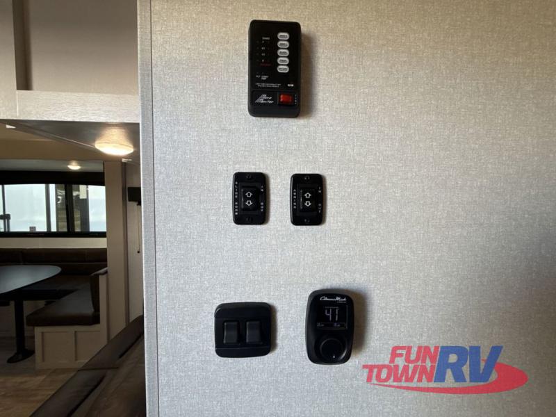 Each Heartland Sundance Fifth Wheel features ThermaShield, a zero-degree tested weather protection system that ensures comfort. This system features a fully enclosed and heated underbelly (ducted) that protects vital systems and provides warmth in cold climates. The AeroChill directional cooling system offers precise temperature control, creating a refreshing and comfortable atmosphere. Inside, you can stay connected on the go with the multiple USB-C 12V charging ports, and the Winegard Air 360 4G + Antenna & router prep that ensures reliable internet connectivity and seamless streaming. The units boast 5/8 in. tongue-and-groove plywood flooring, providing a sturdy and durable foundation, a Keyed-Alike lock system, and the rainproof bathroom power vent ensures a comfortable bathroom experience, removing moisture and odors efficiently.