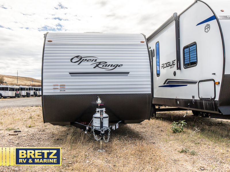 The affordable Open Range Conventional travel trailers by Highland Ridge are ready to meet your camping needs! You will appreciate the durable Magnum Roof system, plus each model is constructed with black front diamond plate protection, 5/8" main floor decking, and self-adjusting electric brakes with E-Z Lube axles for smooth towing. The 81" interior height means you won't feel cramped when relaxing with friends and family, and the residential vinyl flooring throughout is easy to clean, which will be perfect if you're camping with little ones or pets. These models also include a ceiling mount Bluetooth speaker plus a 13,500 BTU roof mounted A/C to keep you cool on those hot summer months.