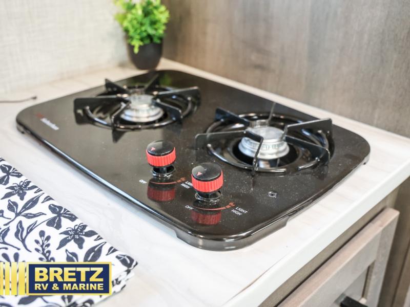 This Open Range Conventional COLT travel trailer is perfect for all your camping needs. There is a front queen bed and bunks beds for sleeping space, plus a booth dinette that will double as both dining and sleeping space for a guest or two little ones. A full kitchen includes a two burner cooktop and microwave to make meals each day, and the private bath with a tub/shower will make it easier than ever to wash up after a day outdoors.