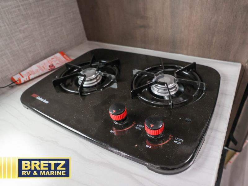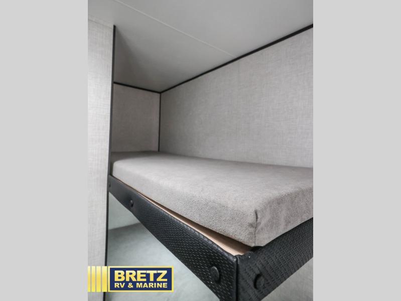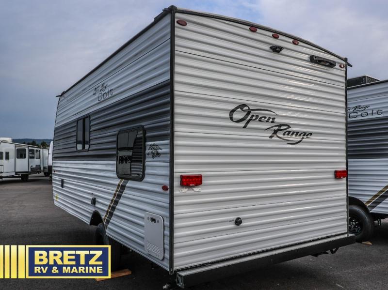 This Open Range Conventional COLT travel trailer is perfect for all your camping needs. There is a front queen bed and bunks beds for sleeping space, plus a booth dinette that will double as both dining and sleeping space for a guest or two little ones. A full kitchen includes a two burner cooktop and microwave to make meals each day, and the private bath with a tub/shower will make it easier than ever to wash up after a day outdoors.