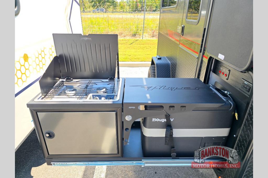 The inTech RV Flyer travel trailers and toy hauler expandables are ready for adventure whenever you are! With the all-aluminum, all-tube cage frame, the Flyer has been built with lightweight and long-lasting materials so that you can enjoy your unit for many, many years. The Flyer has a rugged design so that you can confidently explore new territory and go where traditional RVs cannot. The Flyer has a 2" rear receiver rated for 175 pounds which allows you to bring along your bikes, and the Bluetooth stereo has two speakers you can always have your best music playing. The optional roof rack will allow you to bring along kayaks, and there are more available options depending on the model you choose.