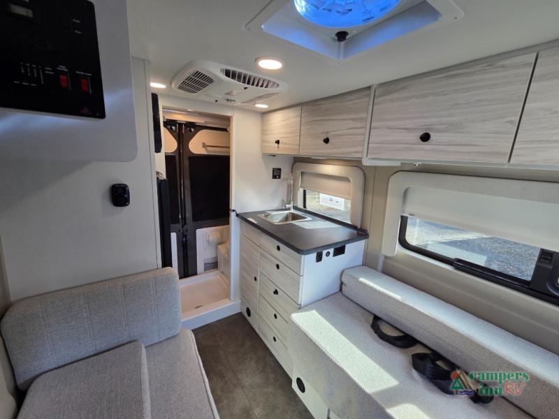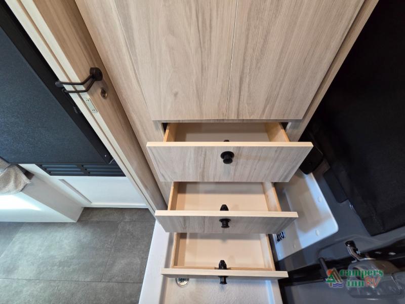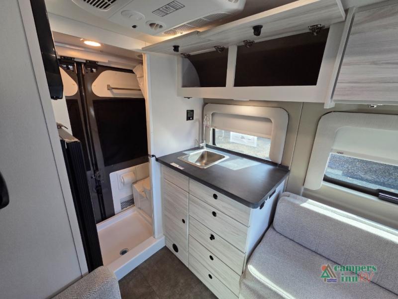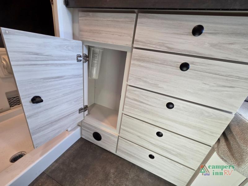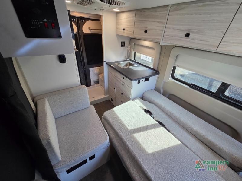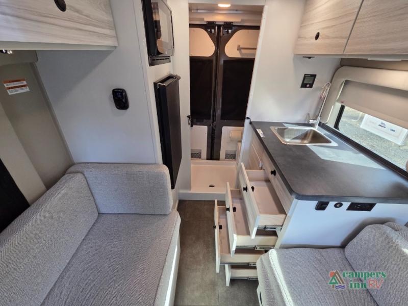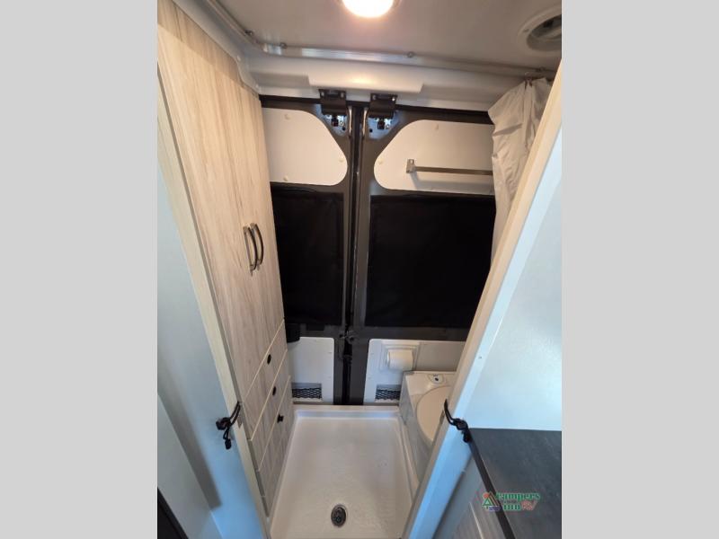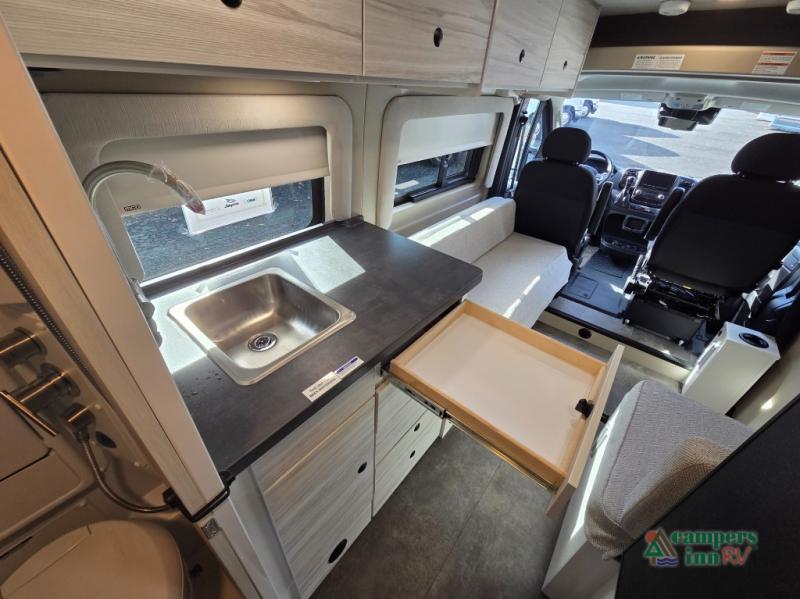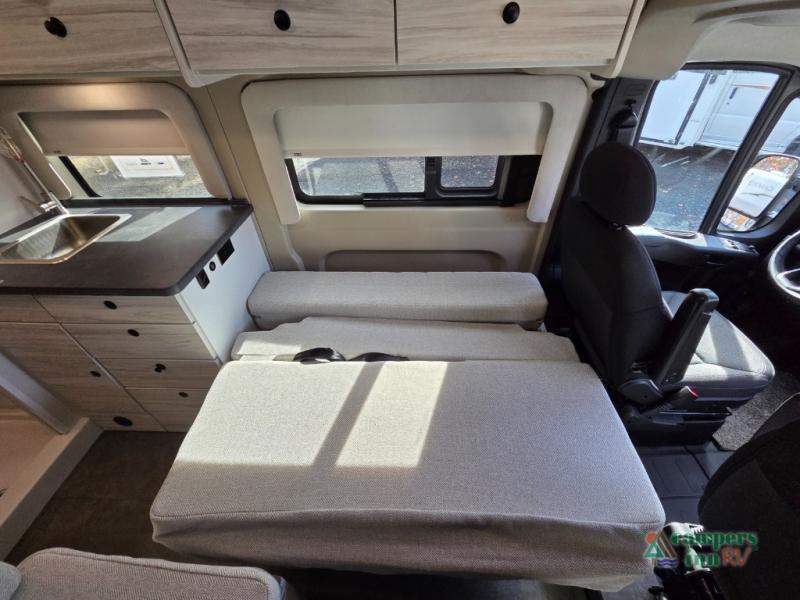 Enjoy every trip you take in this small, but mighty camper van! You will enjoy the drive just as much as the destination with a 10.1" Uconnect 5 NAV infotainment center and a ParkView rear backup camera. There is a 54" sofa to relax on once you park, and at night you can convert the sofa to a 54" x 72" bed. And the 27" bench seat is close by the entrance to provide a place to pull on your hiking boots. After you've worked up an appetite outdoors, you can prepare lunch on the portable induction cooktop, clean up with the stainless steel sink, and store leftovers in the 3 cu. ft. refrigerator/freezer. This model also includes a rear wet bath so you can freshen up before bed, and the bath wardrobe will let you keep your clothes and towels tidy!