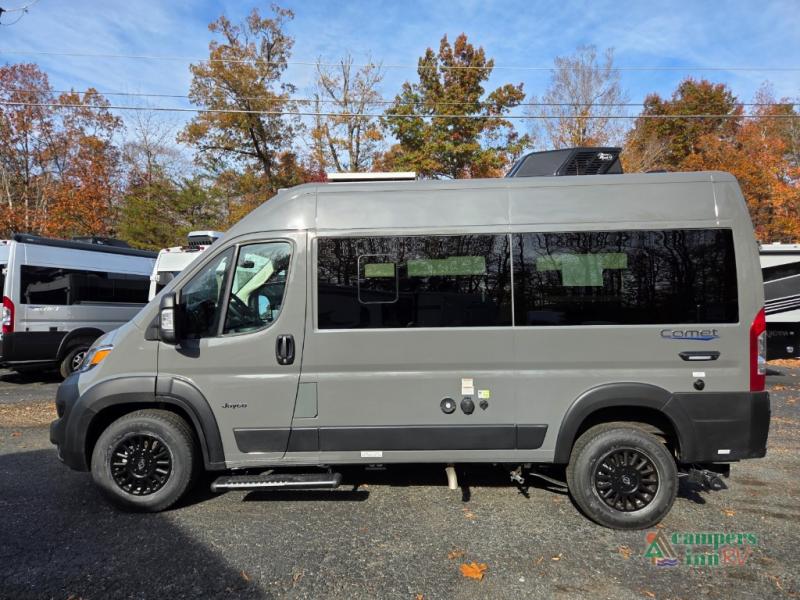 The small and nimble Comet Class B gas motorhome by Jayco is ready for adventure when you are! You'll appreciate the RAM ProMaster 1500 cargo van chassis for a strong and durable foundation, and the 17' 10" overall length means you can easily squeeze into parking spots even in the big city. There are added safety features for your peace of mind, like the LaneSense lane departure warning, drowsy driver detection, and forward collision warning with active braking. An Aqua-Hot GEN-1 hydronic water and heating system will provide hot water and heat when you need it. You'll be surprised by the interior comforts and functionality found in this compact camper van, including a convertible sofa/bed, residential vinyl flooring, swivel seats, and an adjustable table with multiple mounts to name a few!