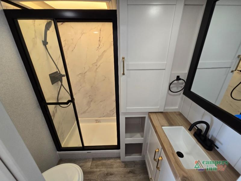 Spacious Full Bath – Residential-style shower and thoughtful storage.
