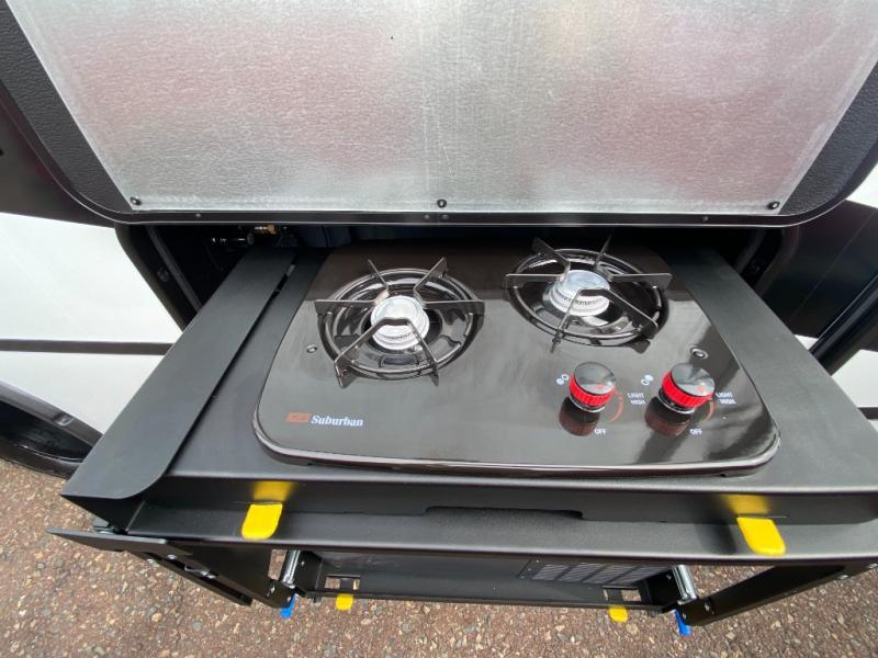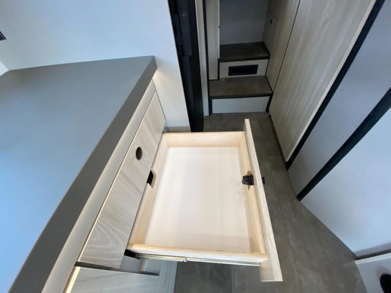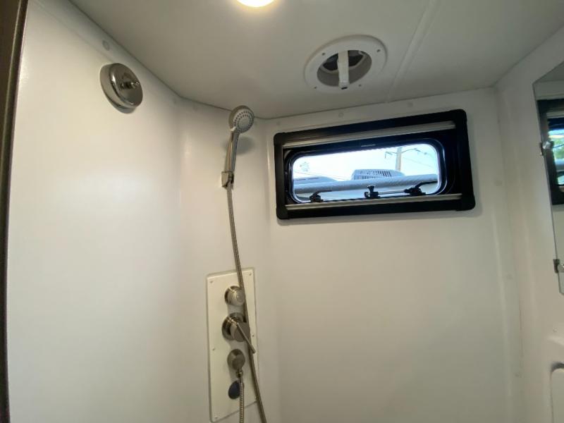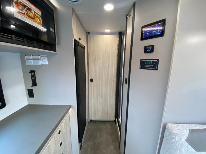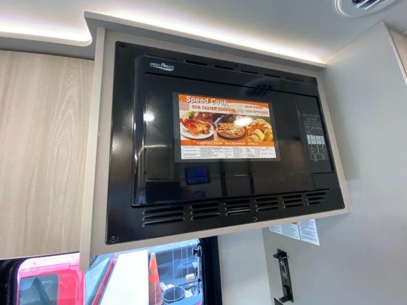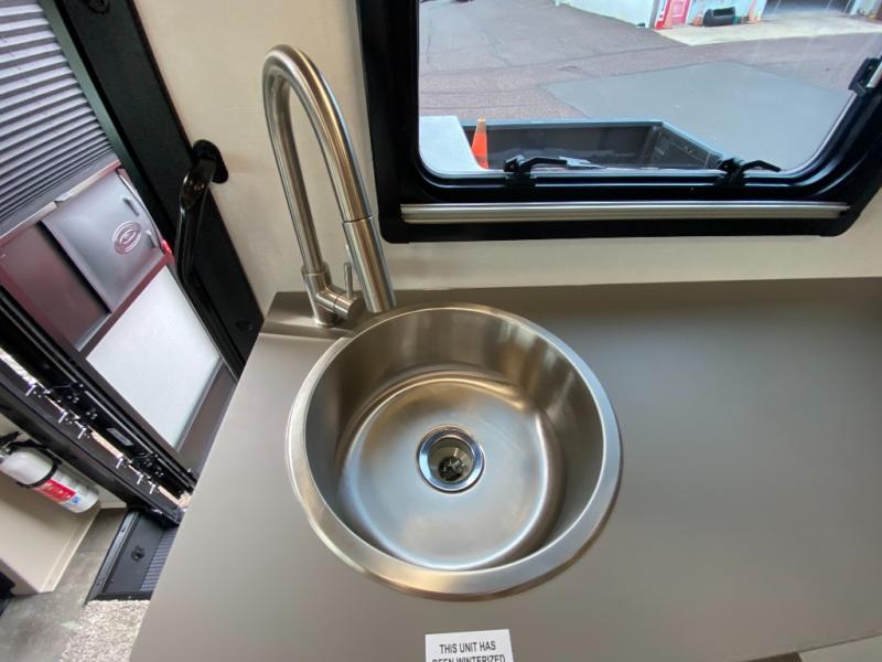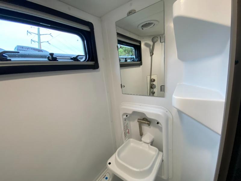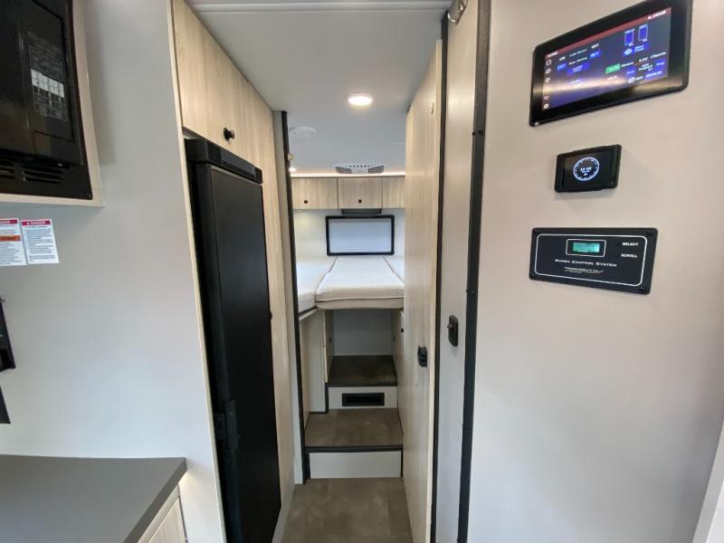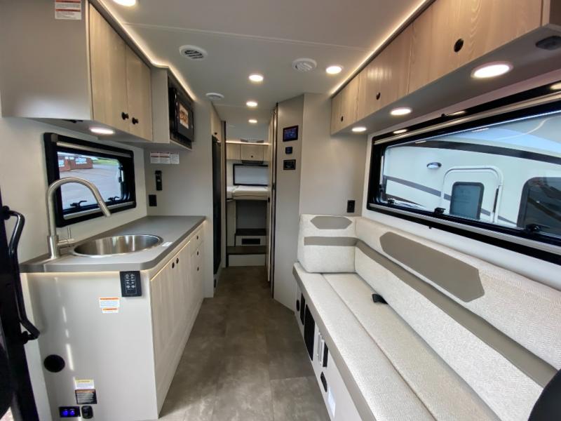 Whether you're roughing it in the mountains or relaxing in the woods, this coach is sure to meet all your needs. The swivel seats can turn around once you're parked to become a part of the living space, and you'll also find a 68" bench with removable tables here where you can enjoy your coffee at each morning. There is an induction cooktop and a convection microwave to prepare dinner, a 5.3 cu. ft. 12V refrigerator to store cold items, and even a pantry for snacks! This van is perfect for couples or friends since there are twin beds with a king bed conversion so you can choose two beds or one big bed, and the optional pop-top can be added if you're needing additional sleeping space!