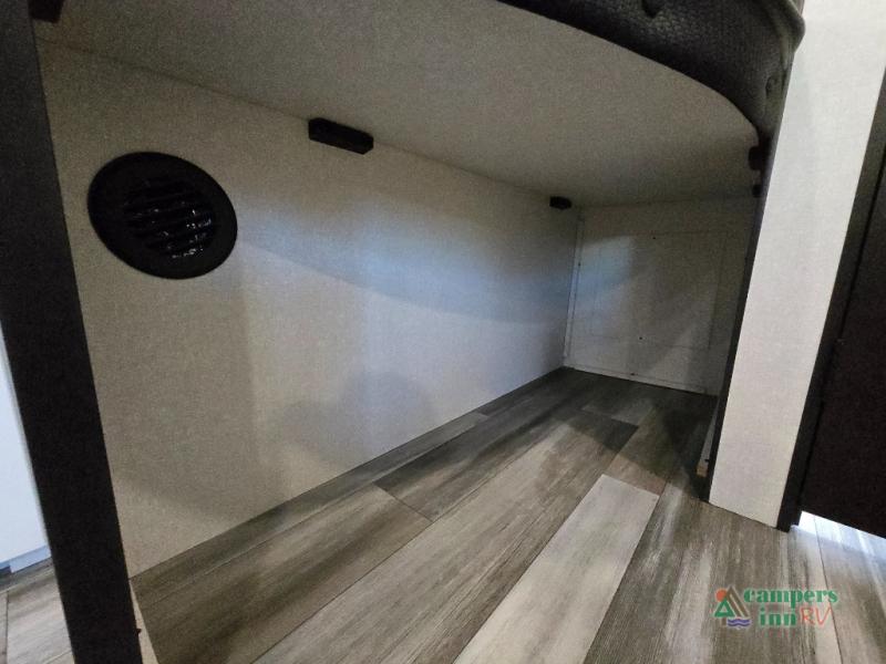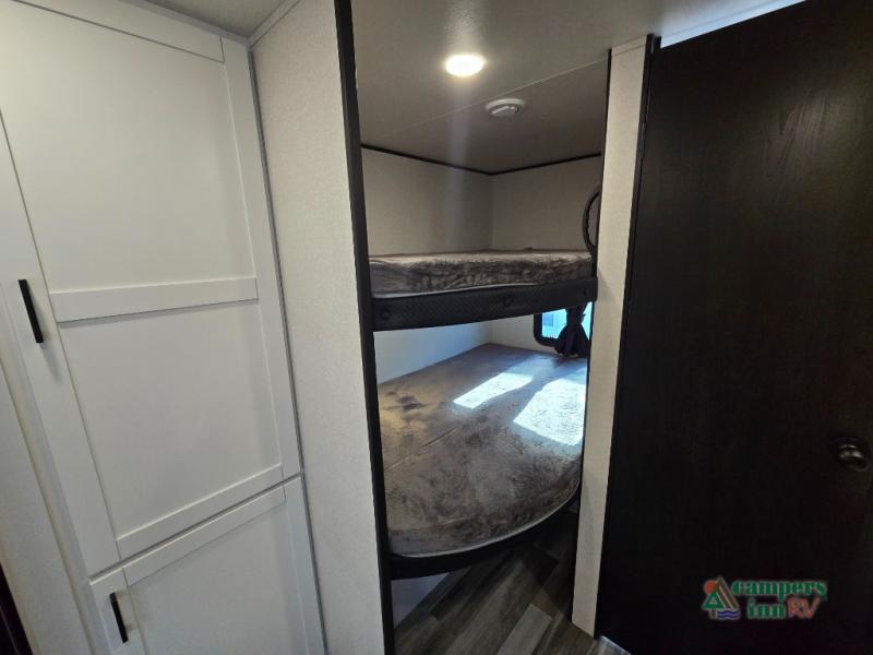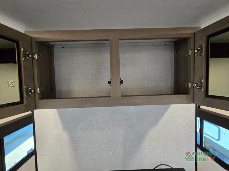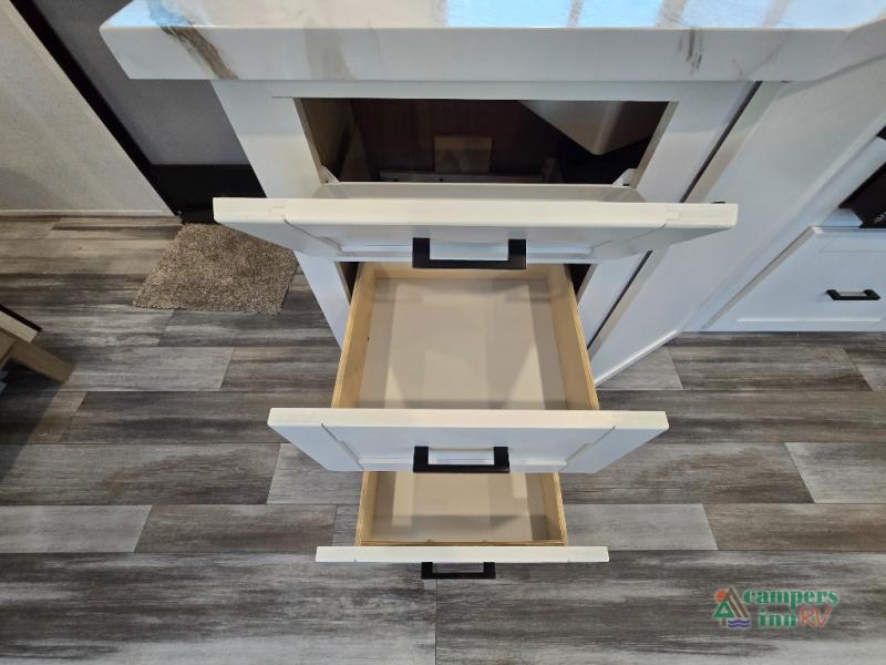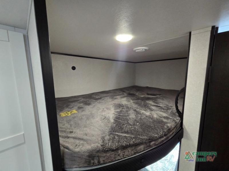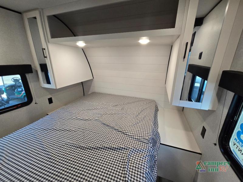 Private Front Bedroom – Enjoy a restful night’s sleep on the RV queen bed, with dual entry for added convenience.