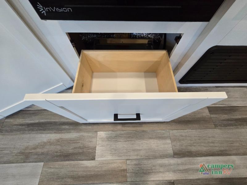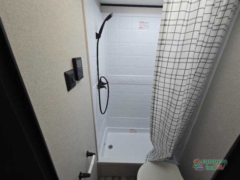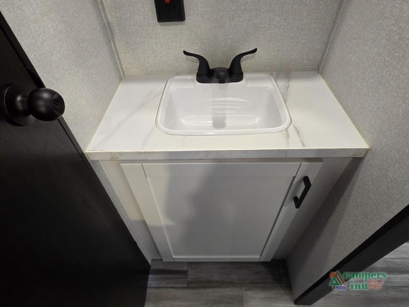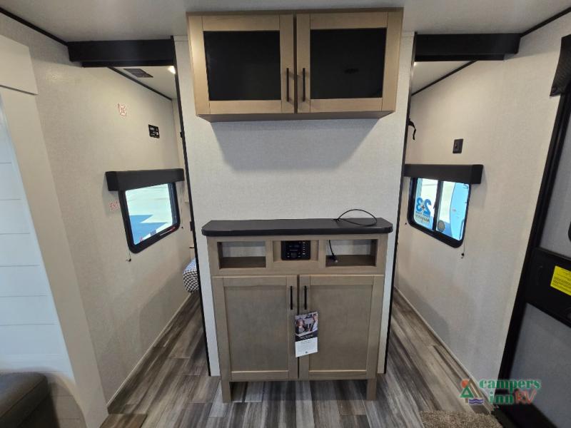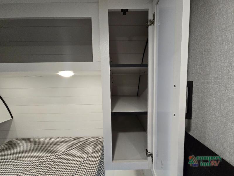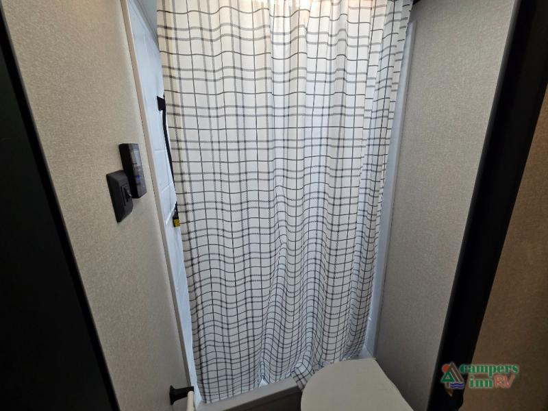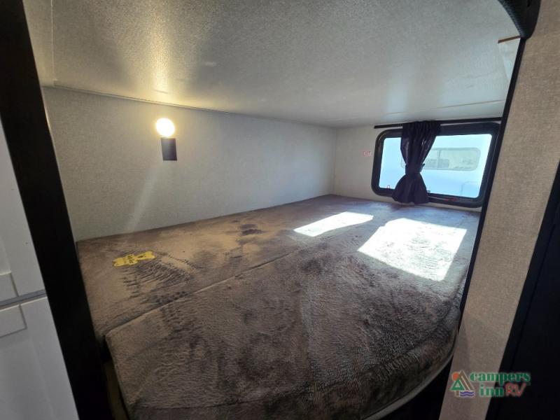 Private Front Bedroom – Enjoy a restful night’s sleep on the RV queen bed, with dual entry for added convenience.