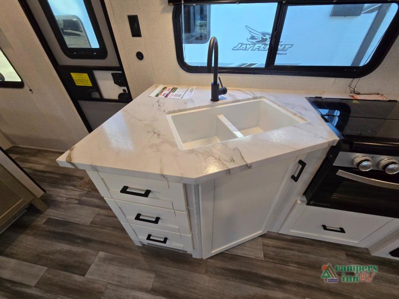With a lightweight design and high-quality construction, the Jay Flight SLX is easy to tow and built to last. Features like a fully integrated A-frame, impact-resistant galvanized-steel wheel wells, and Magnum Truss™ roof system give it unmatched structural integrity.