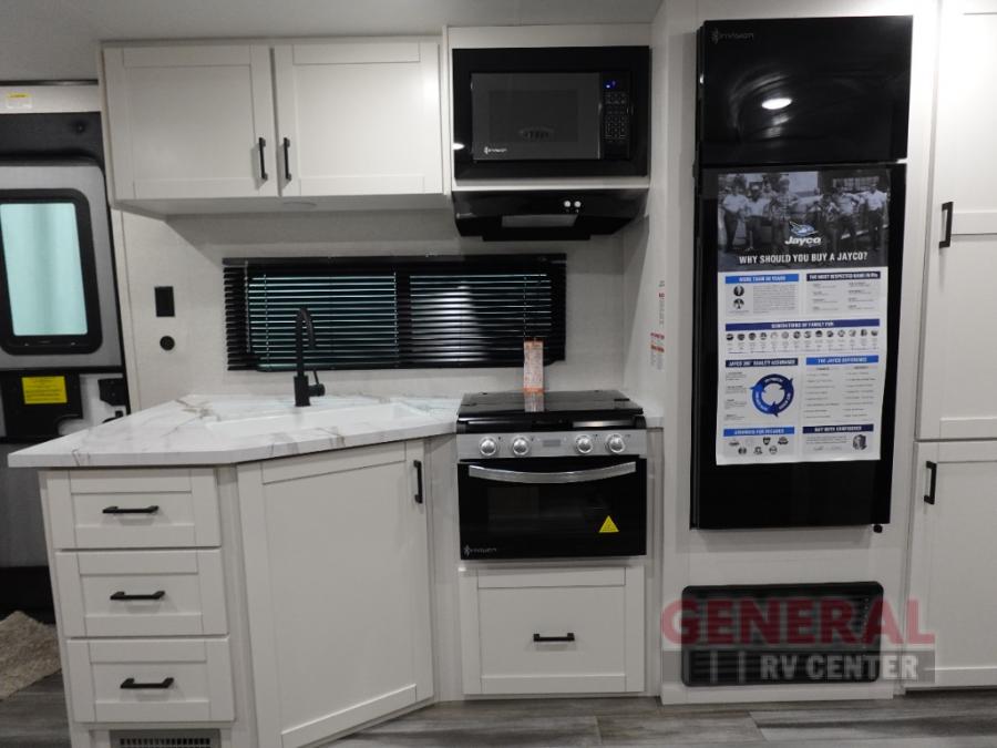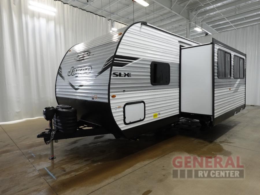 The Jayco Jay Flight SLX travel trailer is quite easy to own because it is lightweight for an easier towing experience. Built on a fully integrated A-frame with galvanized-steel, impact-resistant wheel wells, the Jay Flight SLX has quality at its very foundation. That quality continues on to the electric self-adjusting brakes, easy-lube hubs, Magnum Truss roof system, and LP quick connect. Some of what the mandatory Customer Value Package includes is backup camera prep, Keyed-Alike entry and baggage doors, marine grade exterior speakers, and an on-demand tankless water heater.