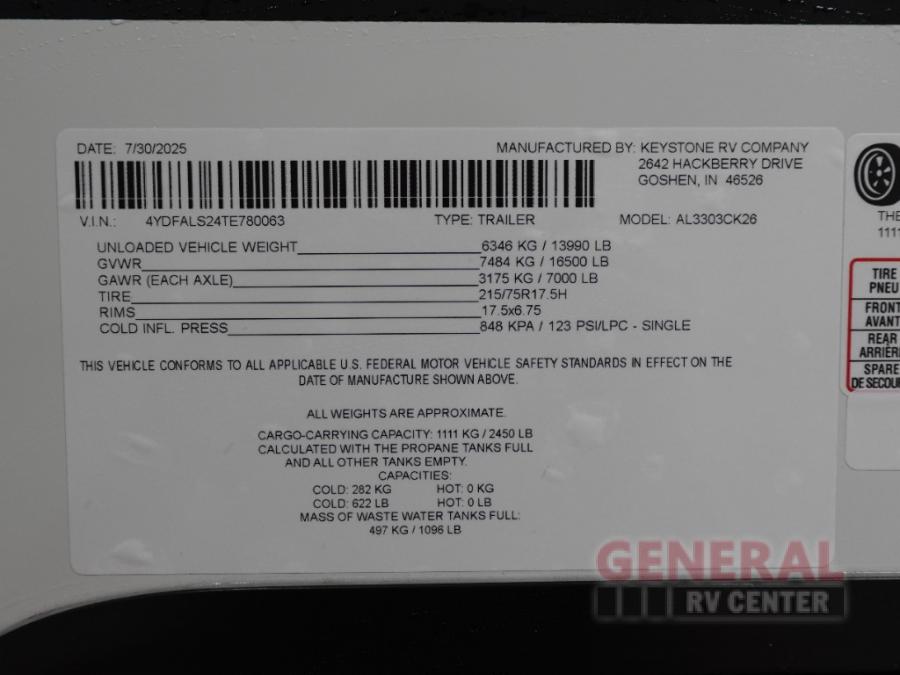 Keystone RV Alpine fifth wheel 3303CK highlights: