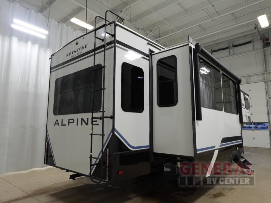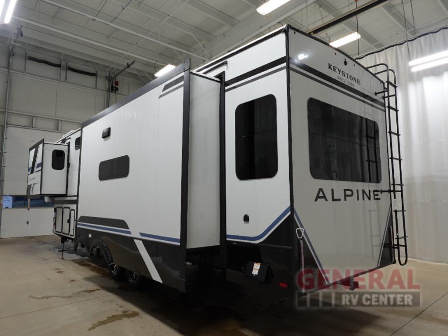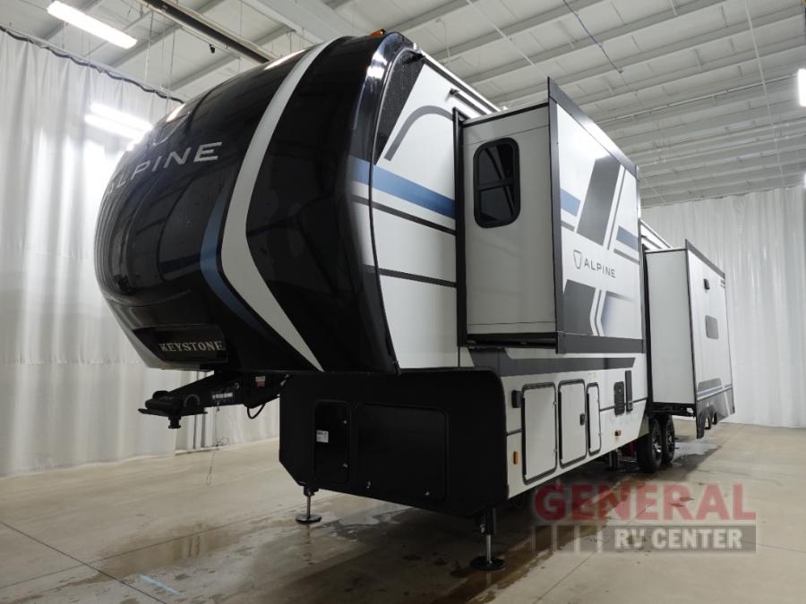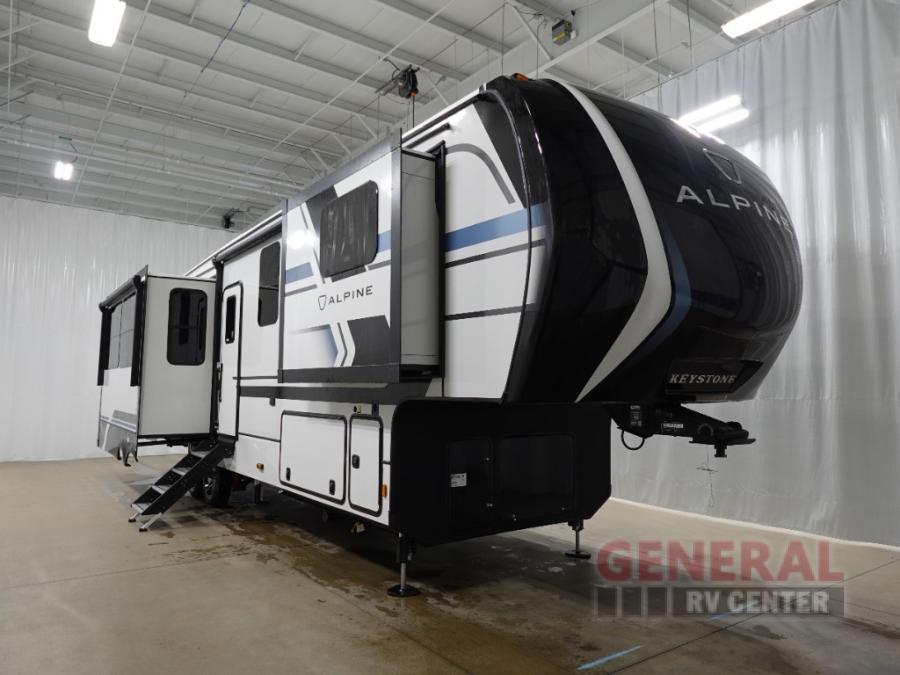 Luxury is not an option, it is a standard with each one of these Keystone RV Alpine fifth wheels! A 8' 4" wide body construction will create an open, residential feeling, and cutting-edge technology will provide a hassle-free camping experience. The Tru-Fit slide construction is more durable and minimizes motor structural stress, as well as resists leaking, and the Blade Pure airflow system provides residential comfort with its high-performance. Each fifth wheel includes designer flooring throughout, stunning solid wood cabinet doors, luxurious crown molding, and solid surface countertops in the kitchen. The exterior also includes an outside shower with hot and cold water, Lippert strut assisted SolidSteps, Hitch Vision with LED lighting, and many more conveniences!